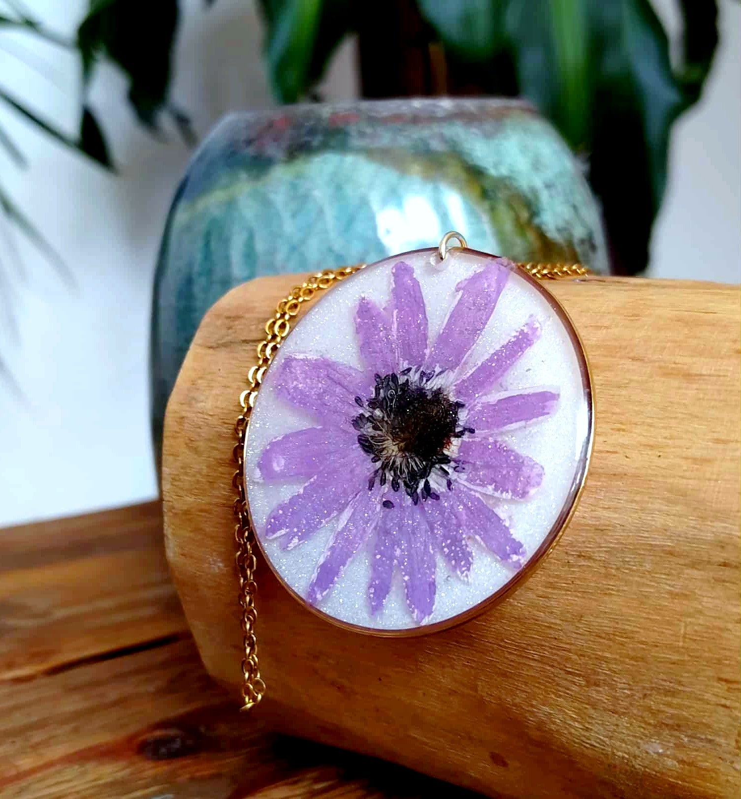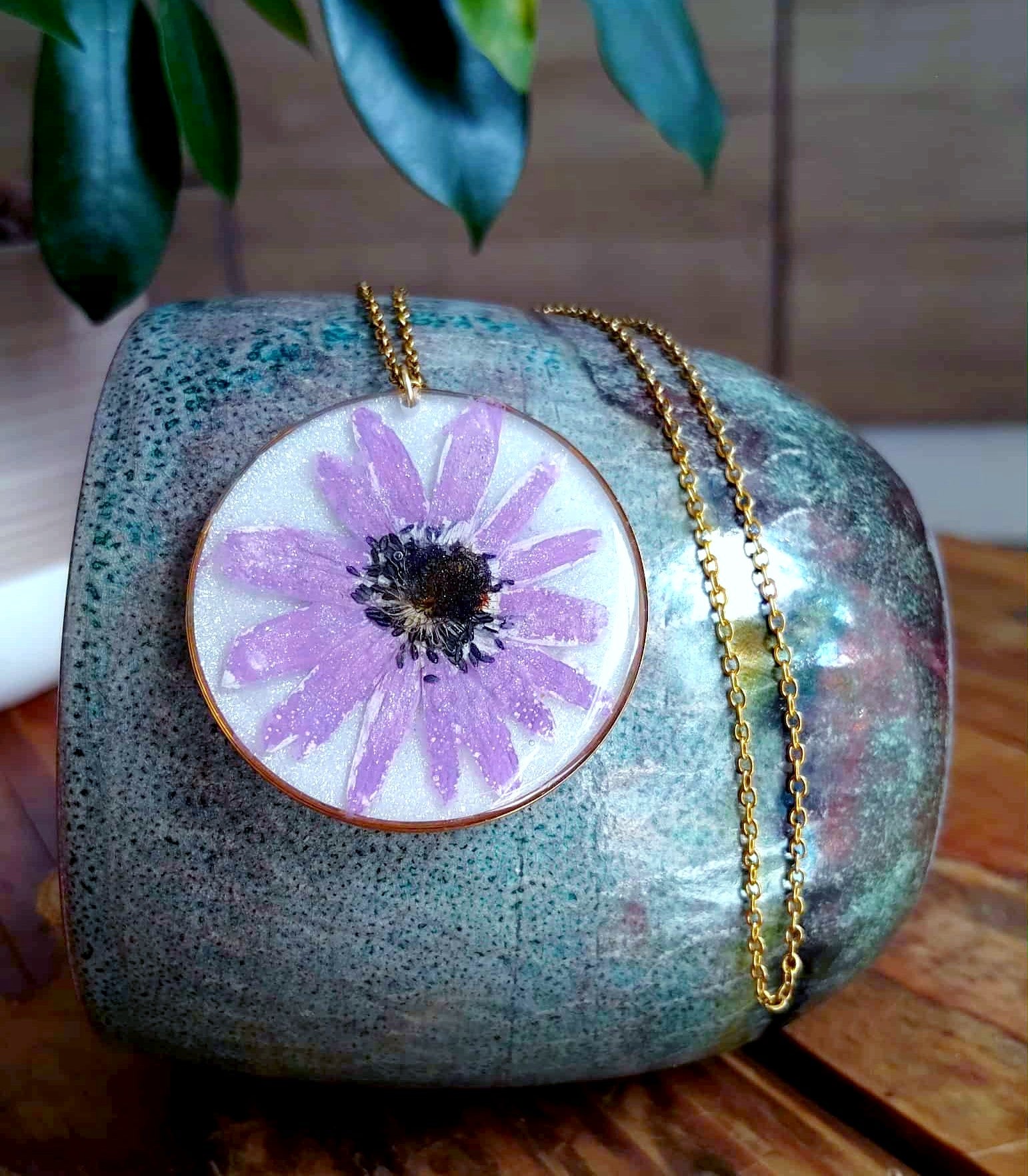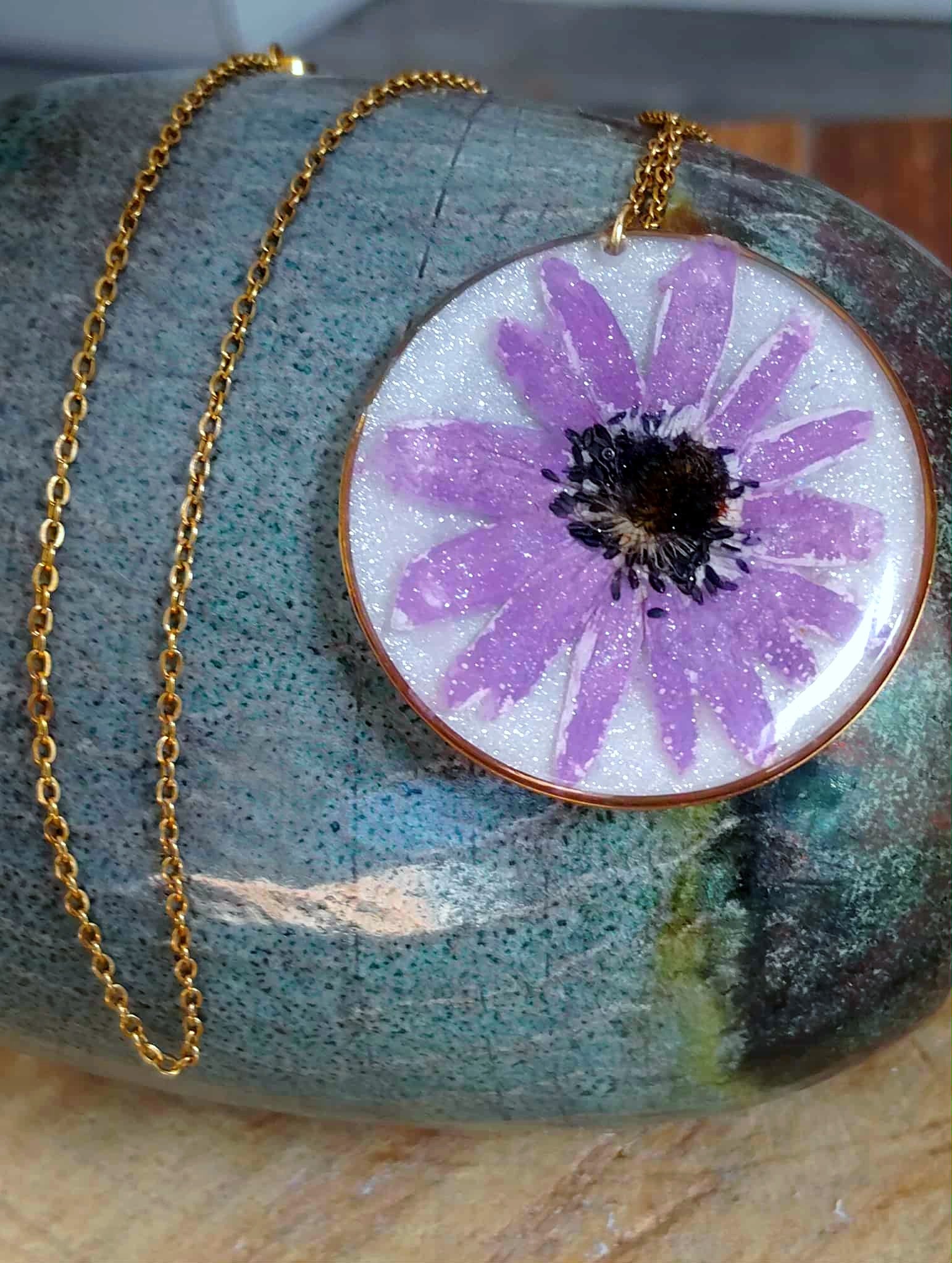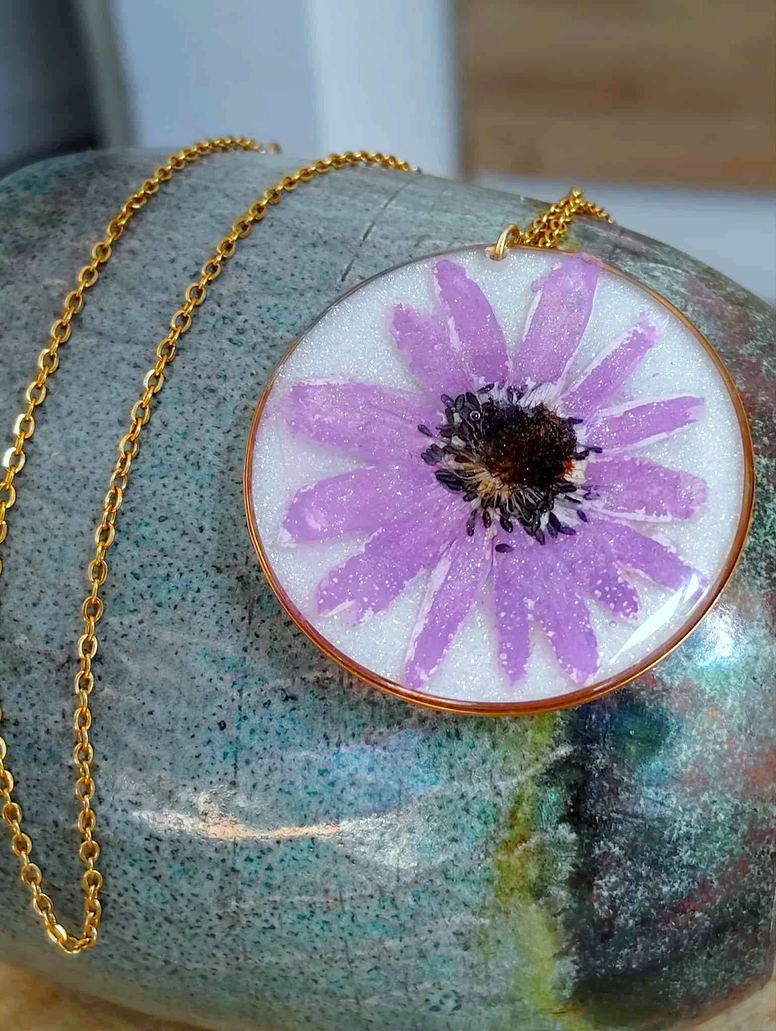 Pendentif Cercle de 4 cm de diamètre en acier inox recouvert de résine époxy de marque française et de haute qualité