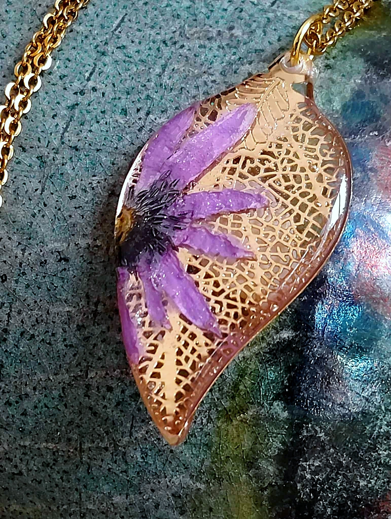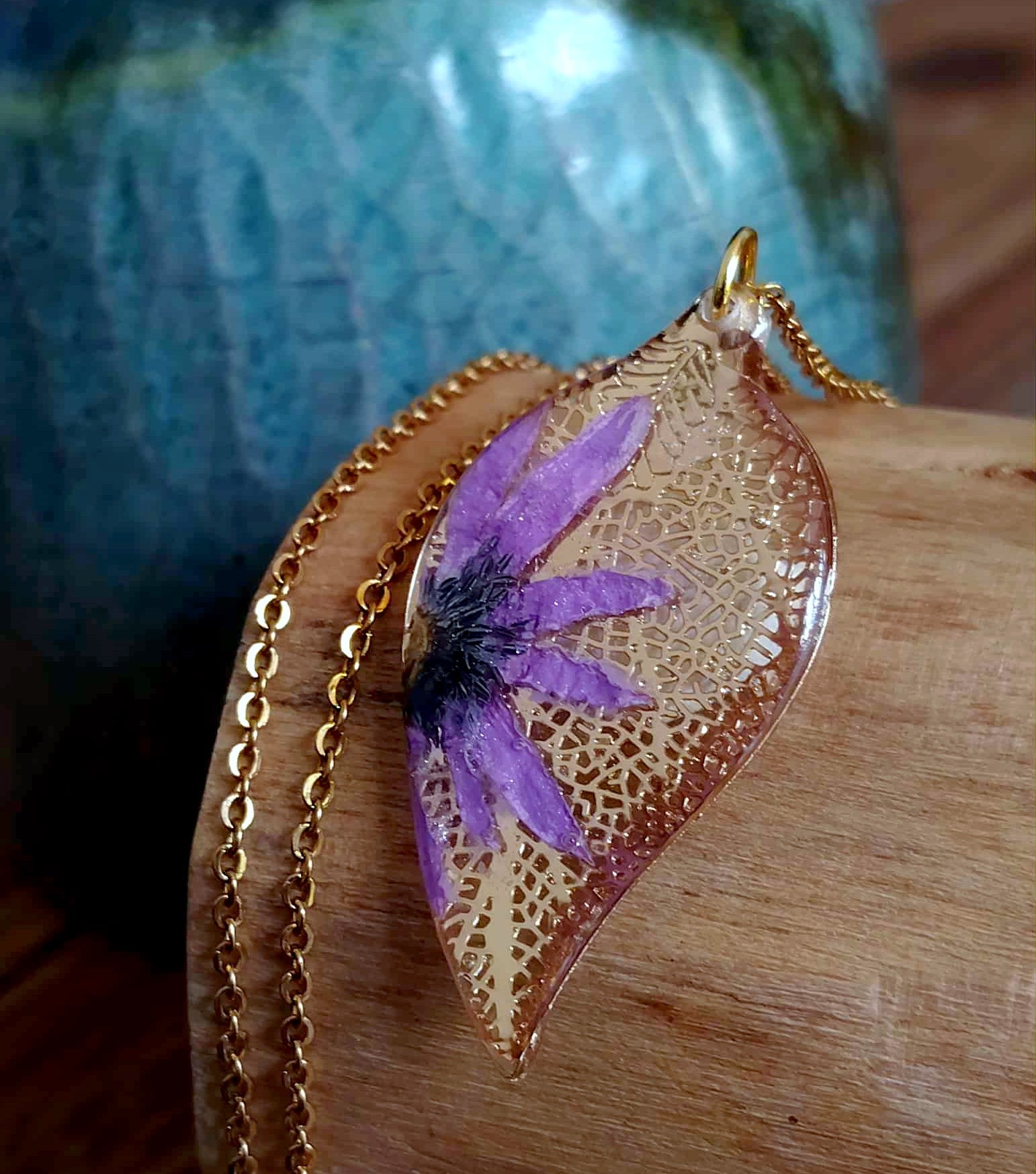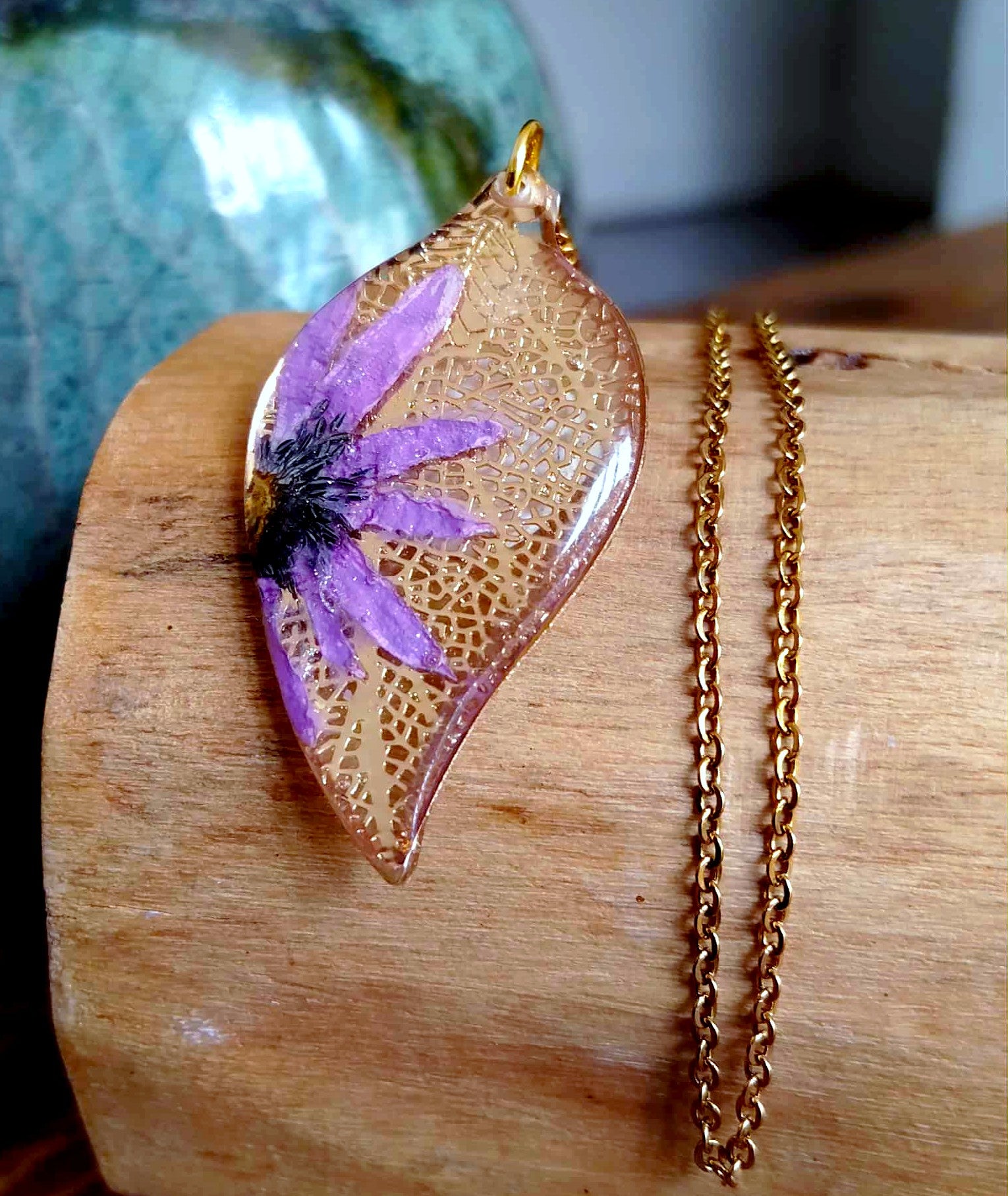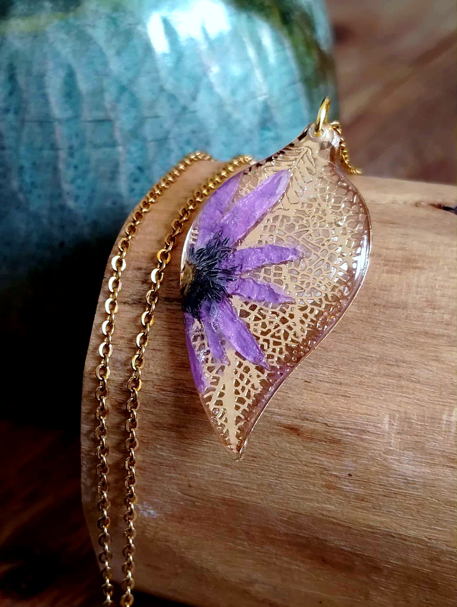 Pendentif Feuille de 3 cm de long en acier inox recouvert de résine époxy de marque française et de haute qualité
