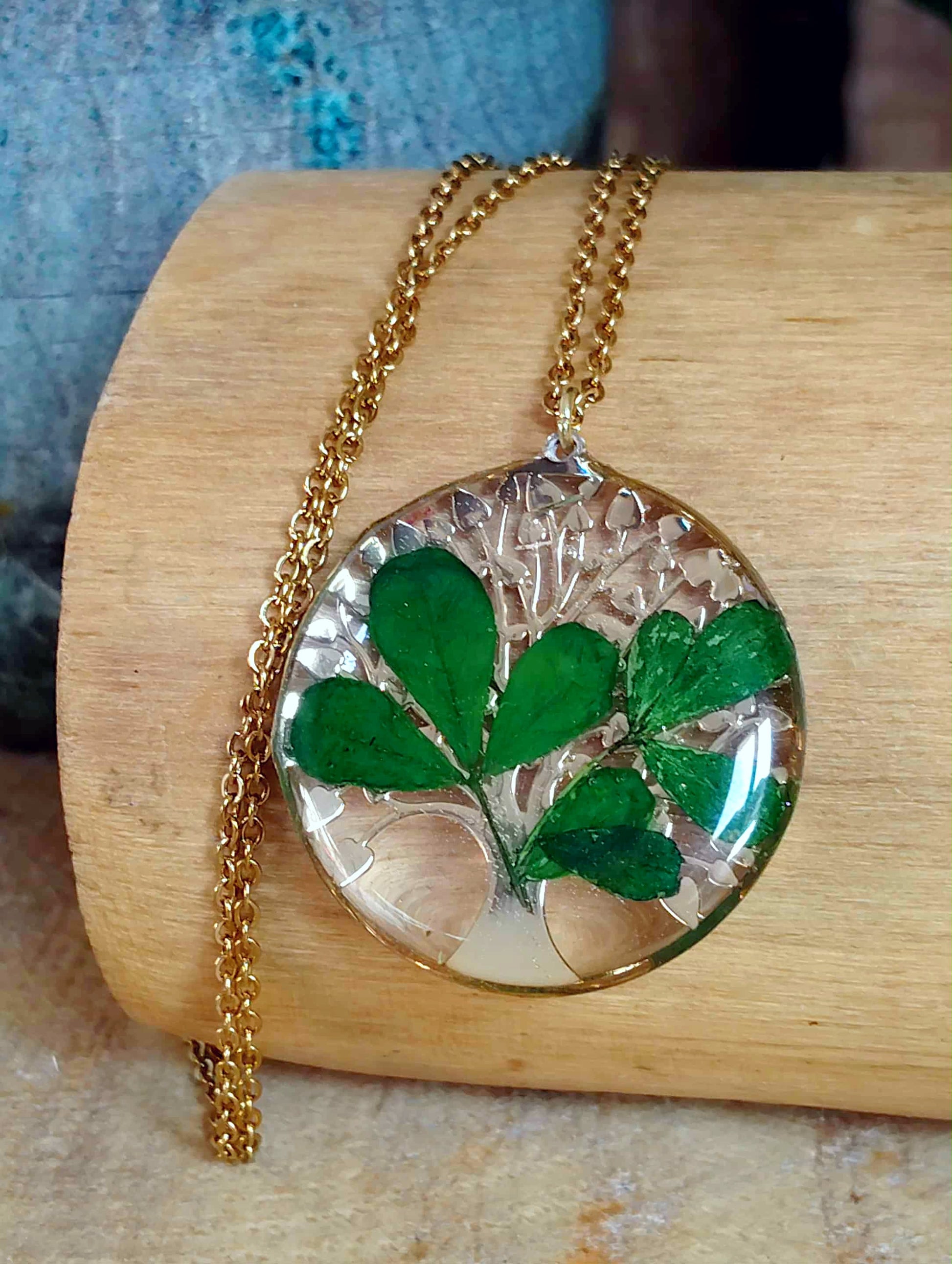 Pendentif Cercle de 3,5cm de diamètre arbre de vie en acier inox recouvert de résine époxy de marque française et de haute qualité