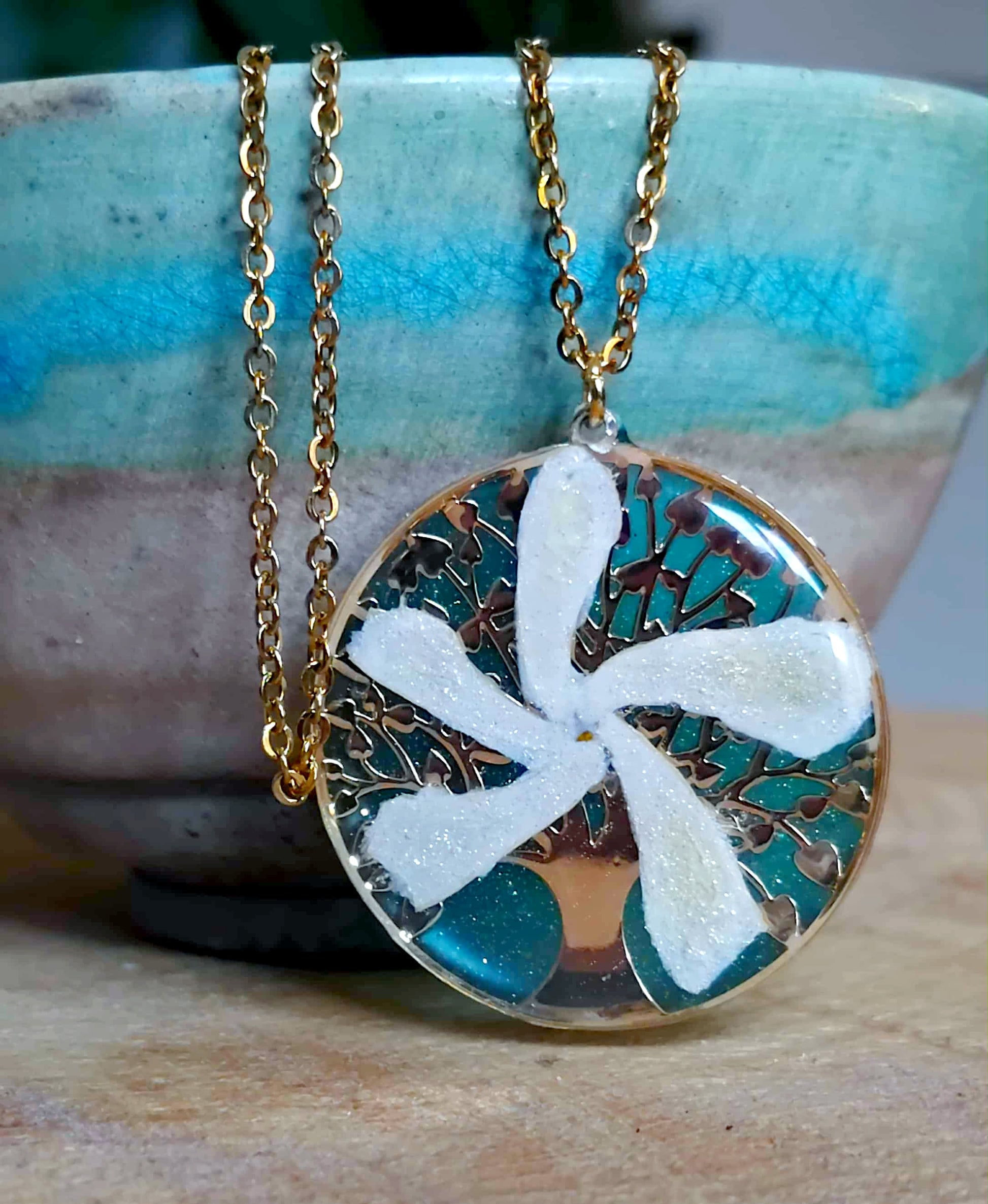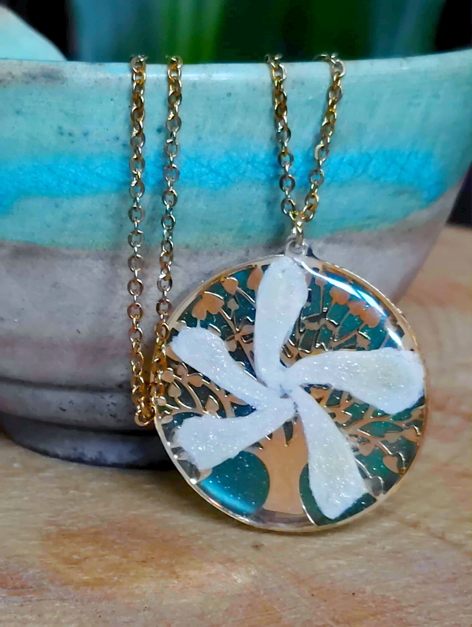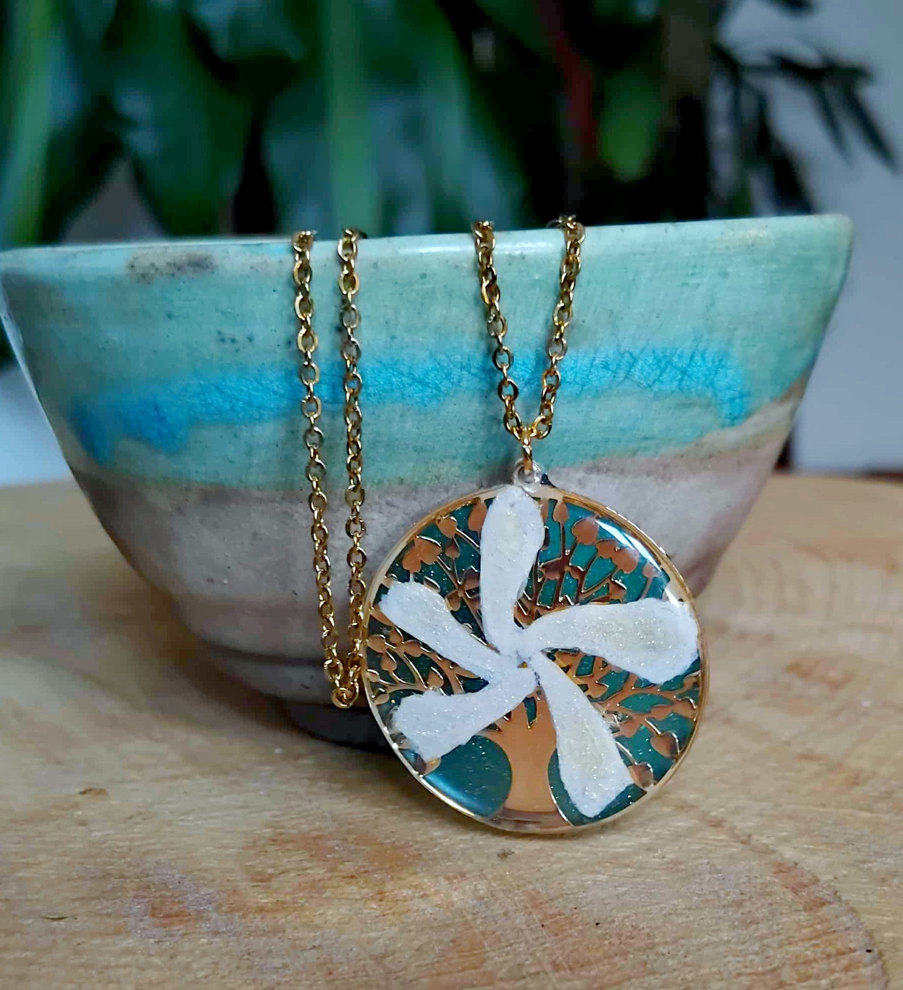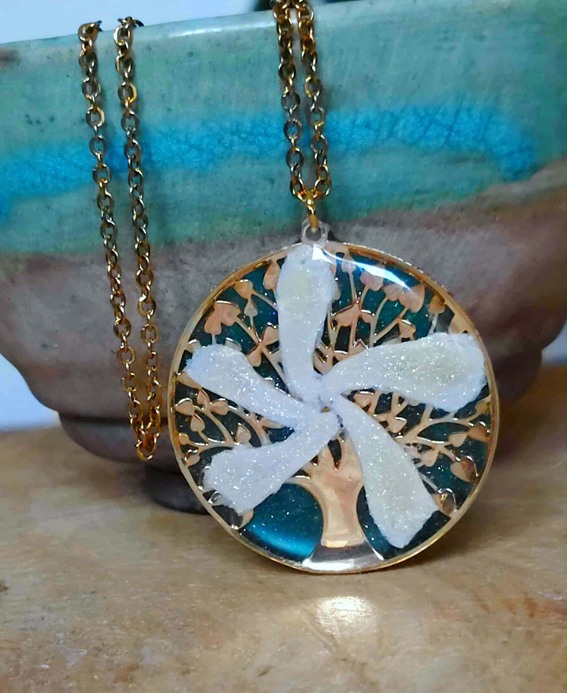 Pendentif Cercle de 3,5cm de diamètre arbre de vie en acier inox recouvert de résine époxy de marque française et de haute qualité