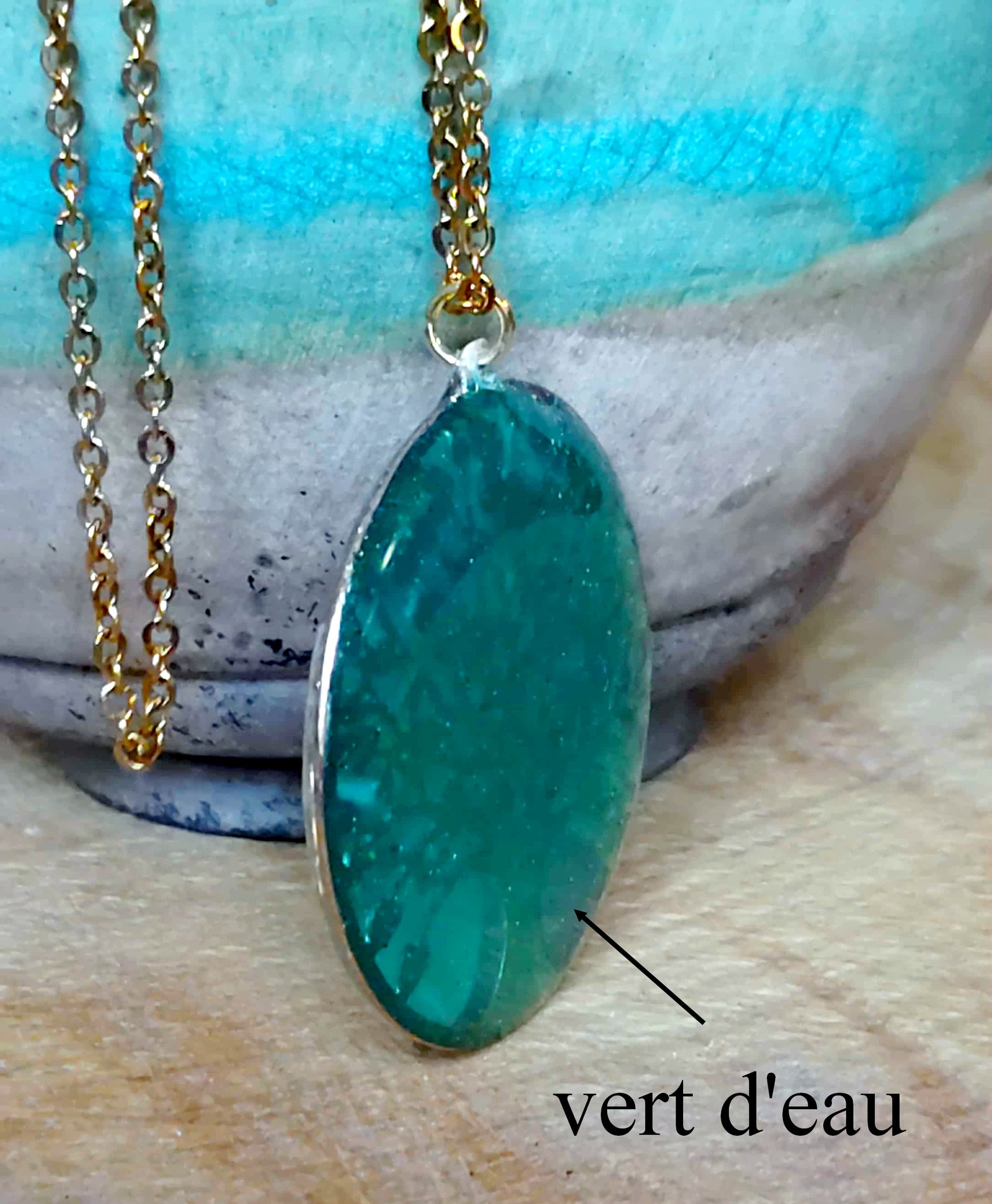 Il est monté sur une chaîne en acier inox doré 45 cm