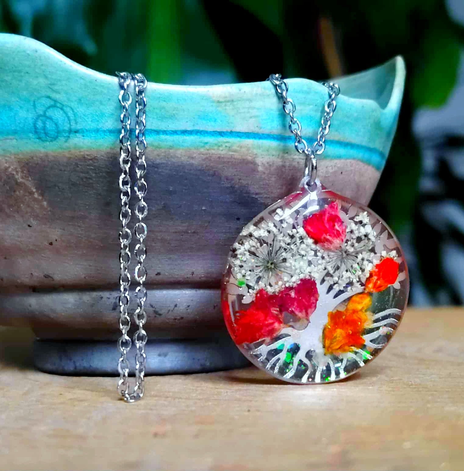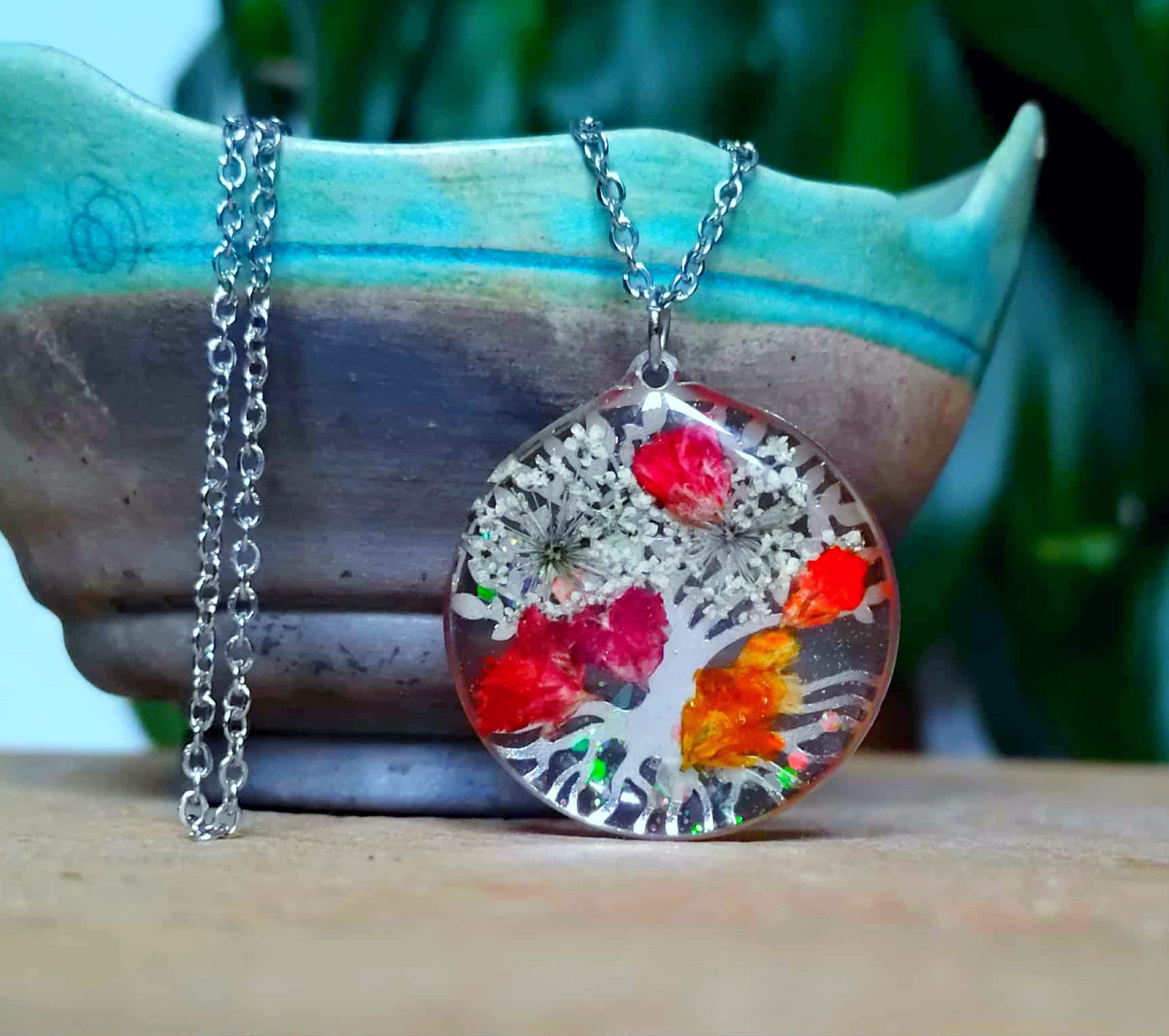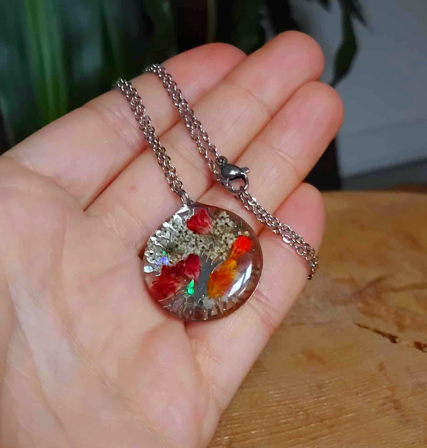 Le pendentif cercle de 2,5 cm de diamètre est en acier inox motif arbre de vie recouvert de résine époxy de marque française et de haute qualité