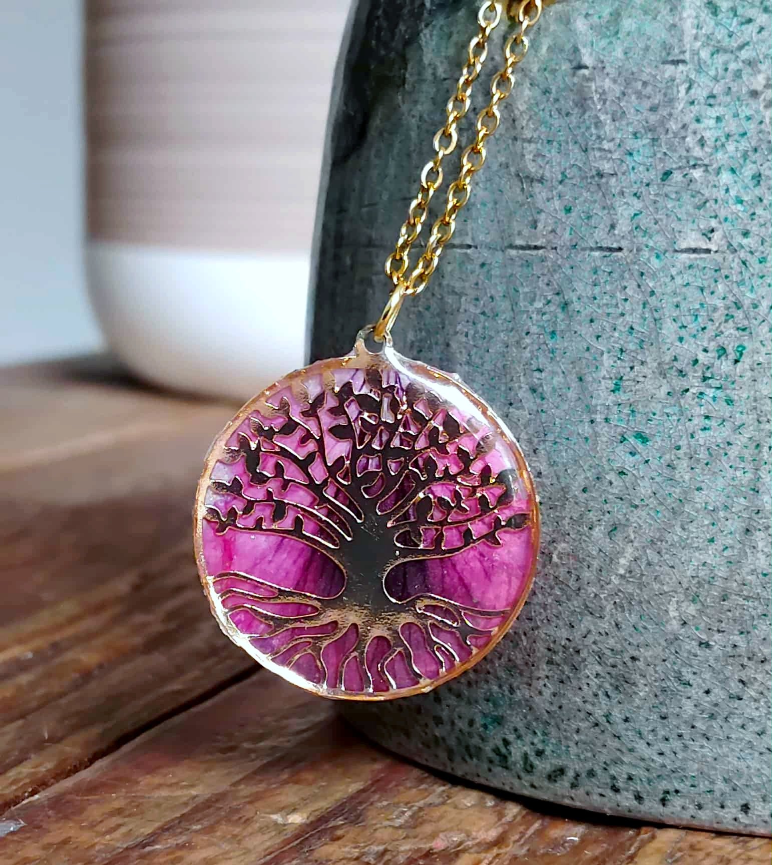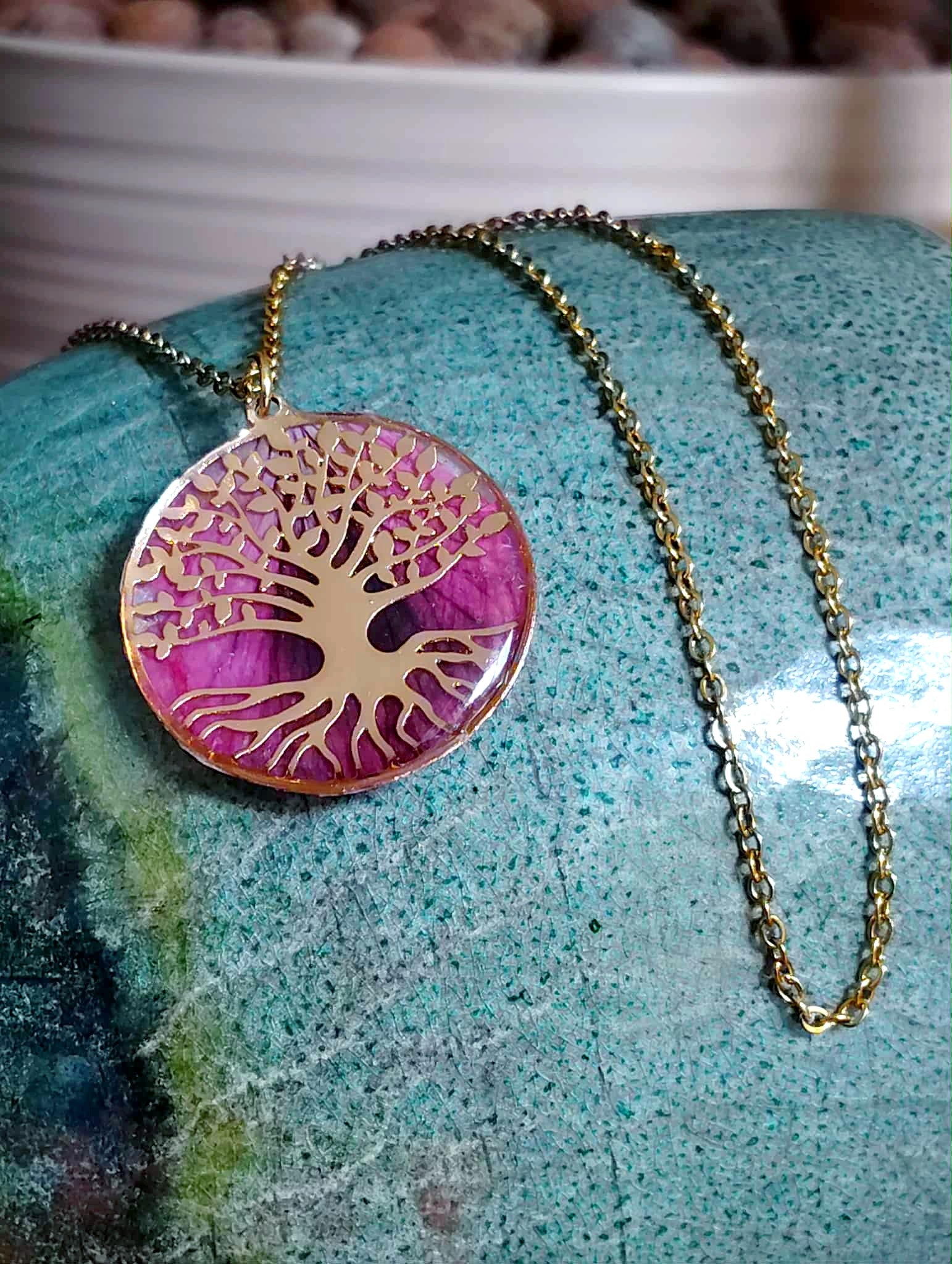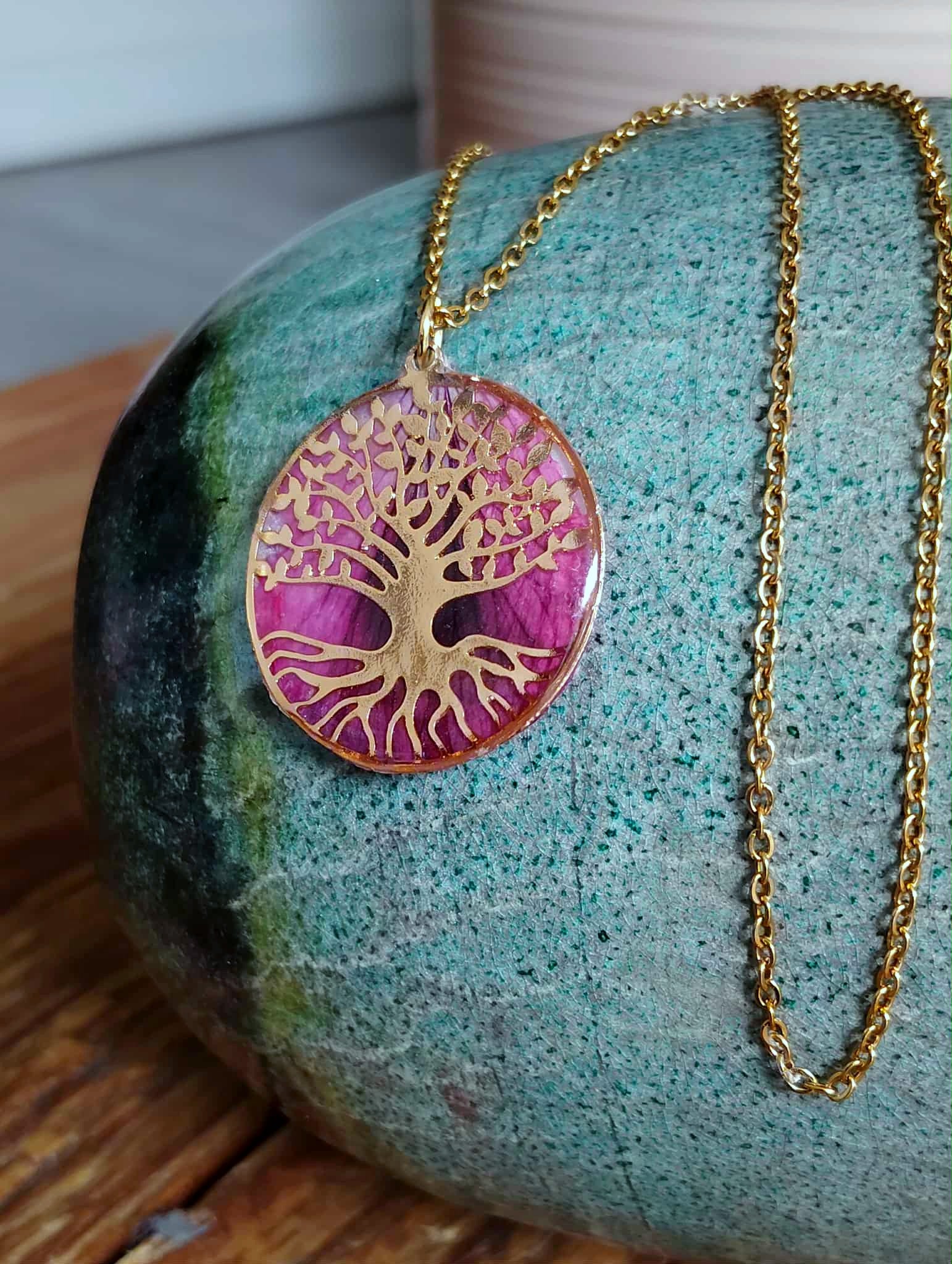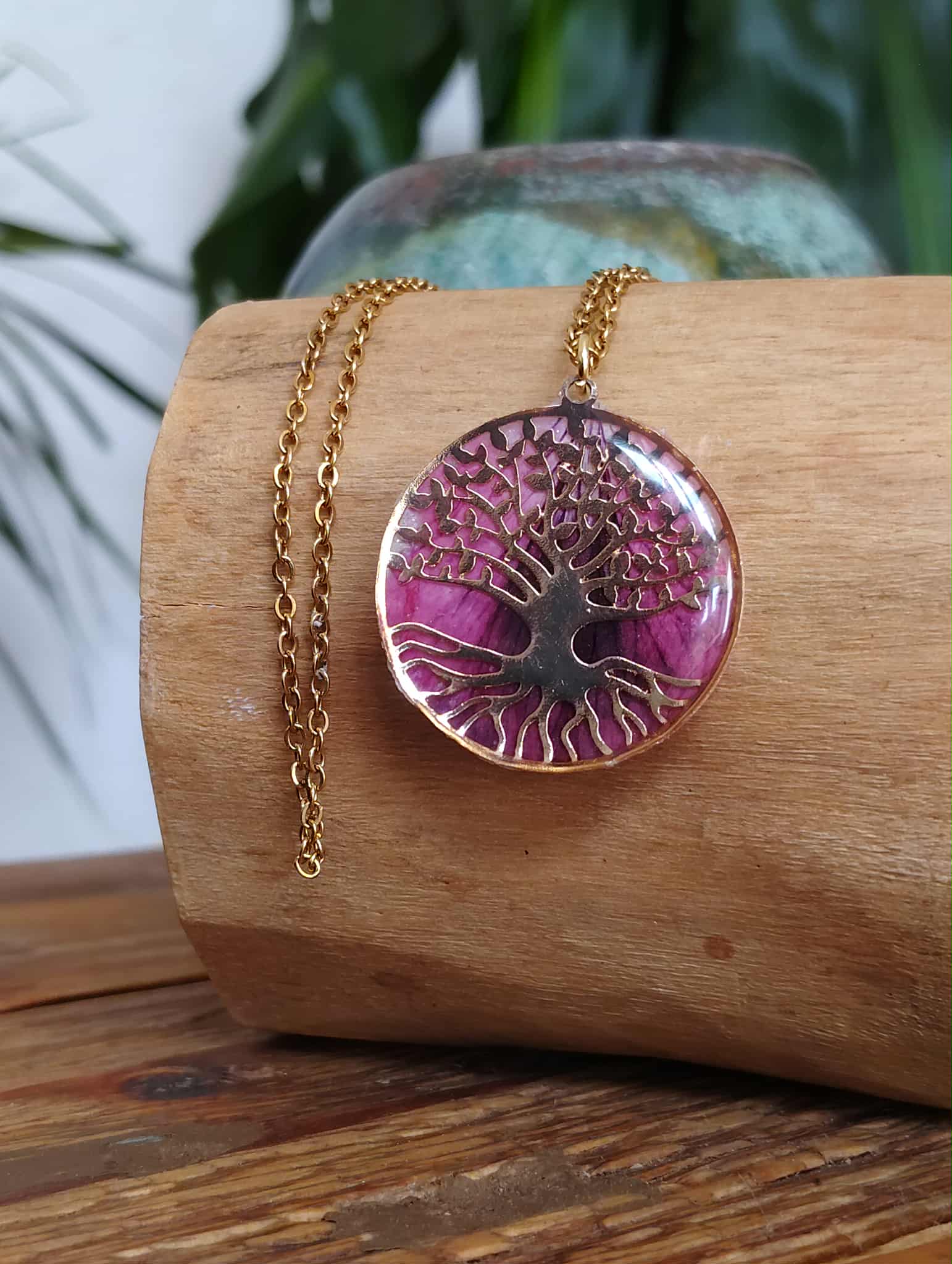 Pendentif Cercle de 3cm de diamètre arbre de vie en acier inox recouvert de résine époxy de marque française et de haute qualité