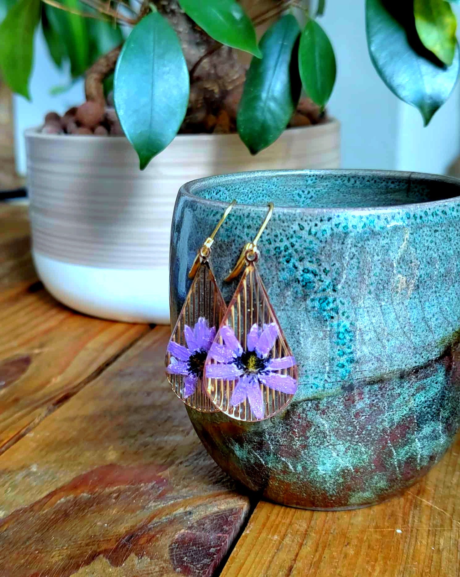 Les pendentifs de 4cm de long sont recouverts de résine époxy de marque française et de haute qualité
