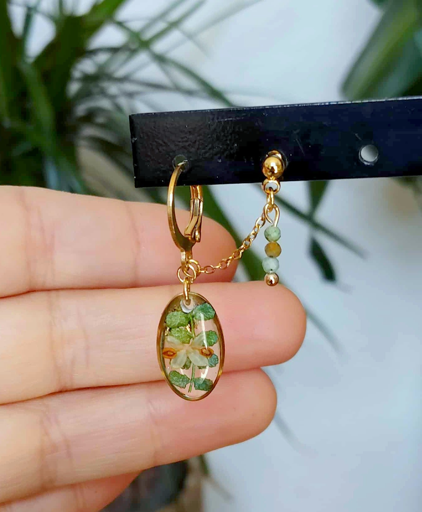 Boucles d'oreille Double piercing Fleur d'olivier Fougère