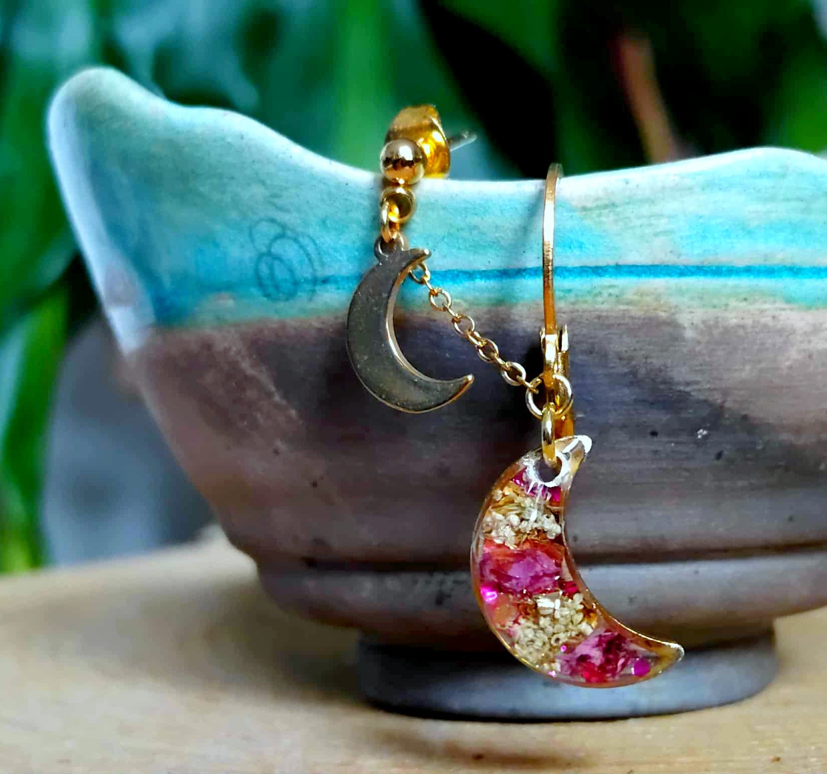 Le pendentif lune de 1,5cm de long est recouvert de résine époxy de marque française et de haute qualité