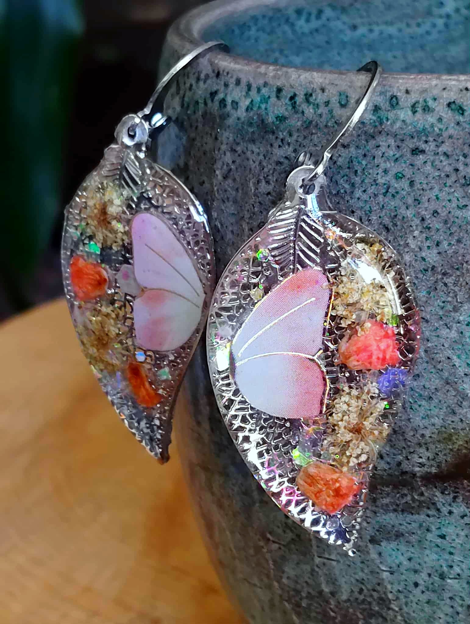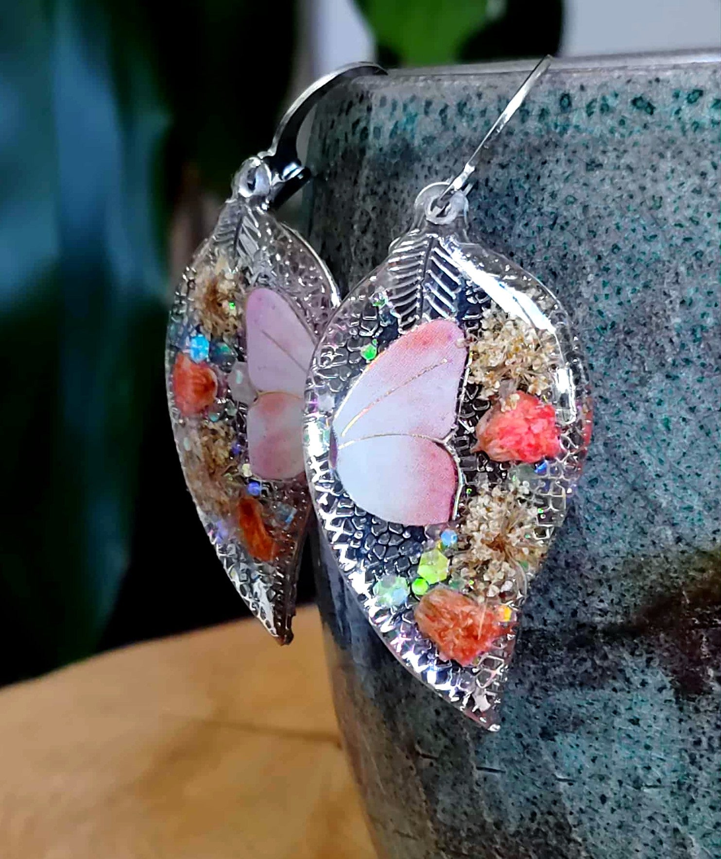 Les pendentifs feuilles de 3,5 cm de long sont recouverts de résine époxy de marque française et de haute qualité