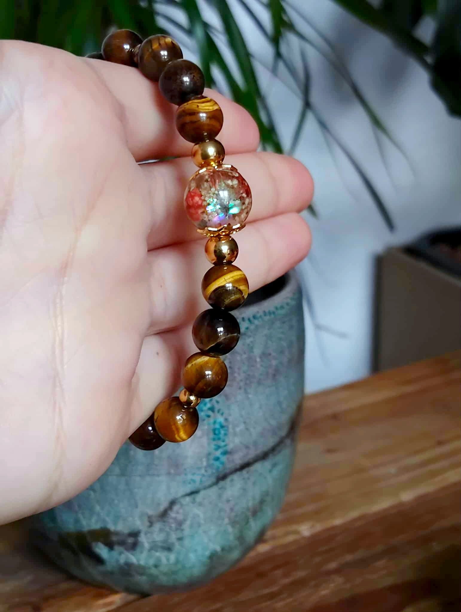 Bracelet fleur de carotte Gypsophile Œil de tigre