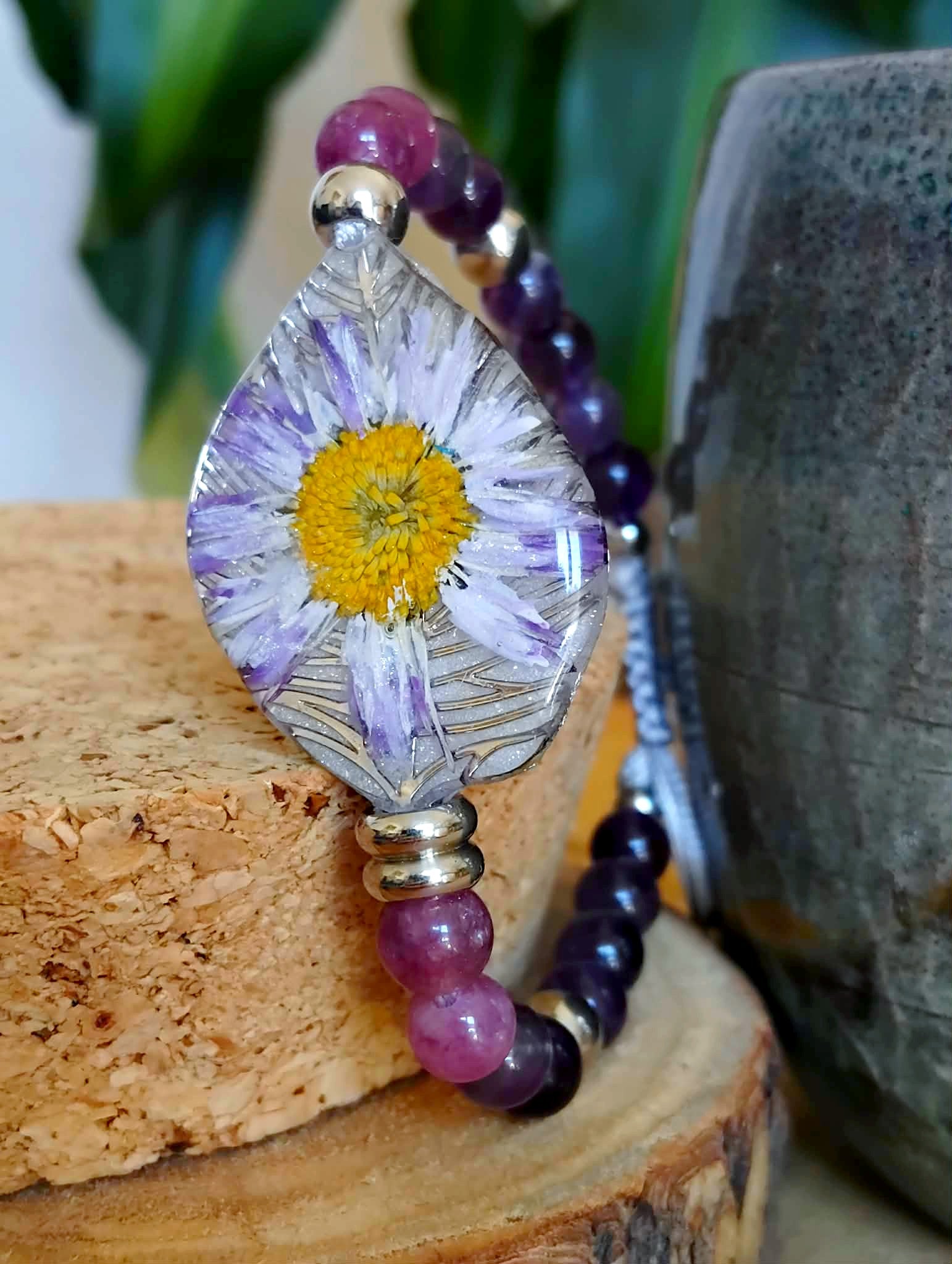 Il est accompagné de 18 perles d'améthyste( 6mm) et de 8 perles en acier inoxydable