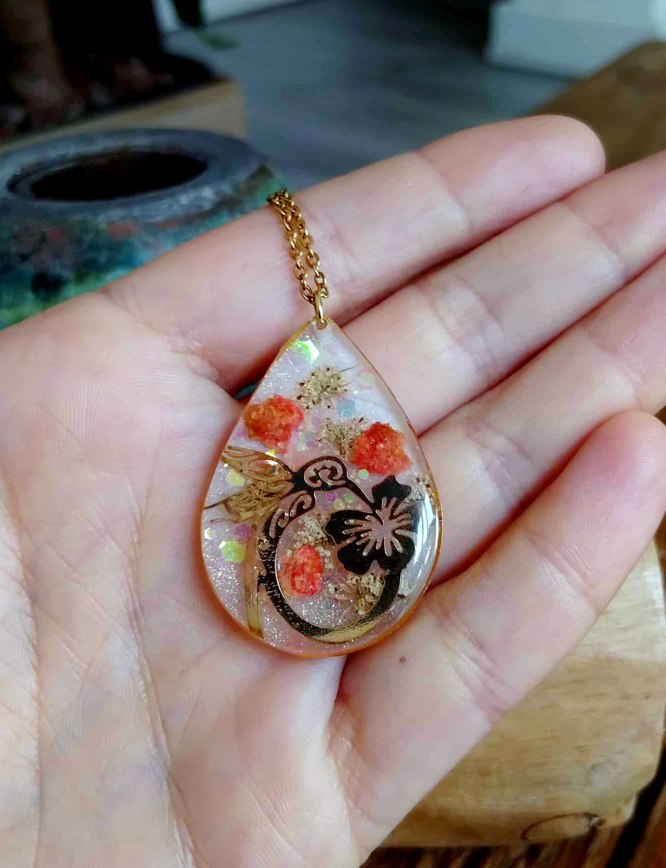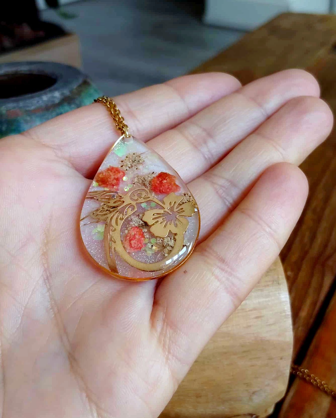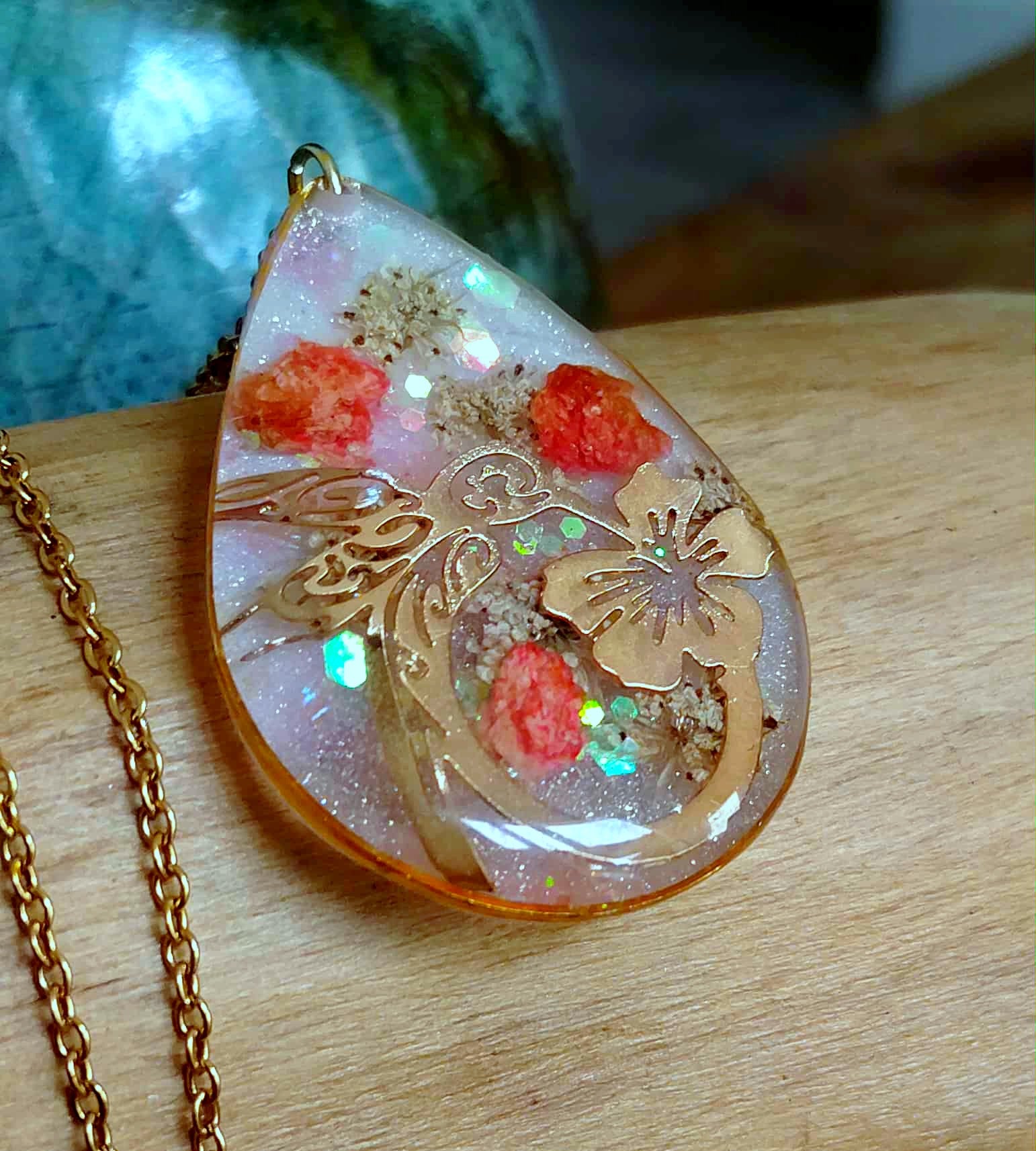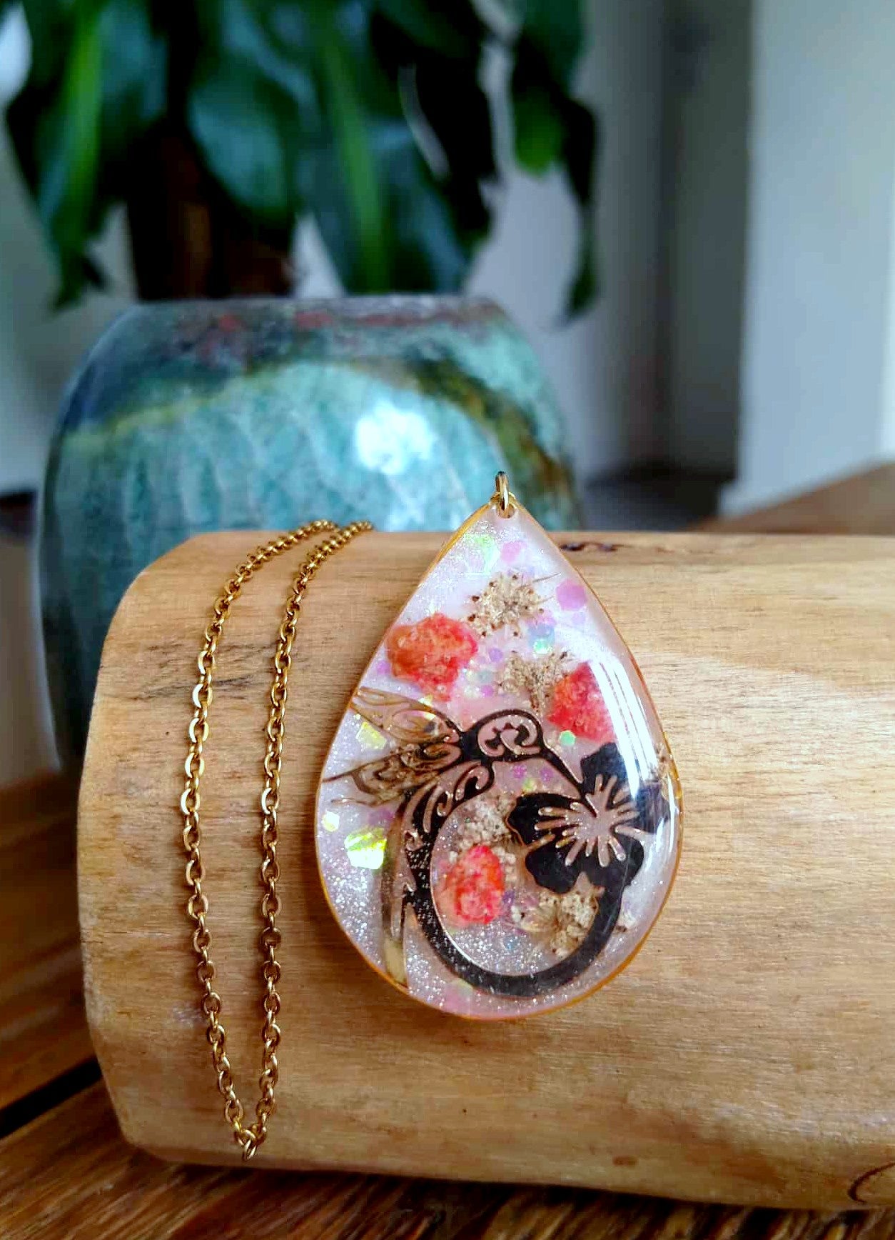 Pendentif Goutte de 3cm de long en acier inox recouvert de résine époxy de marque française et de haute qualité