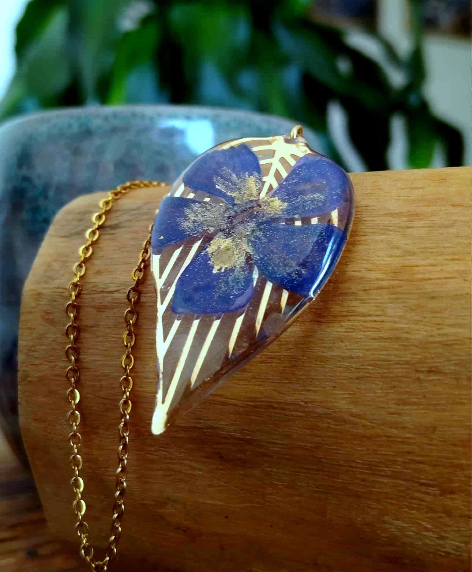 Pendentif Feuille de 4,5cm de long en acier inox recouvert de résine époxy de marque française et de haute qualité