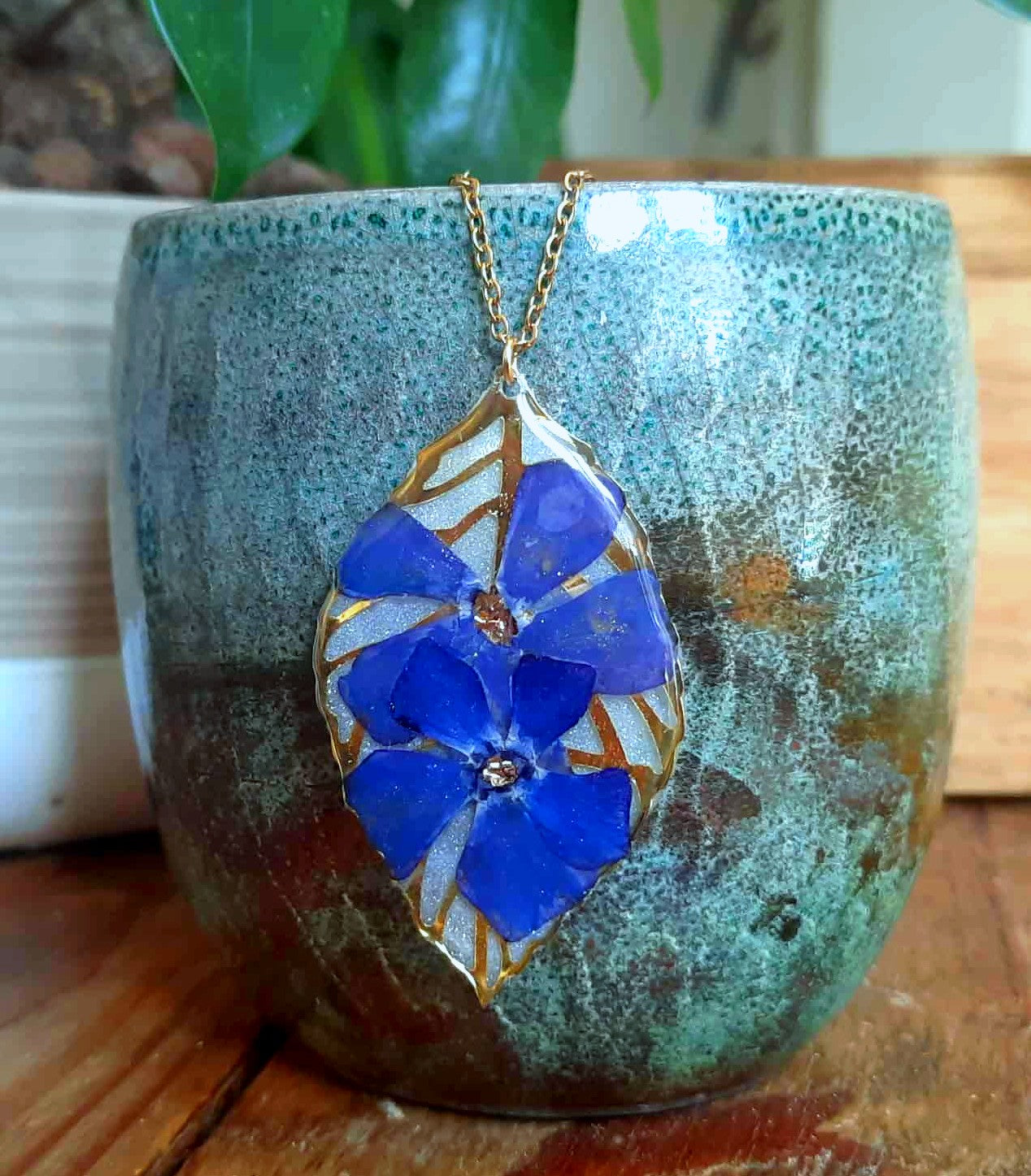 Pendentif Feuille de 5 cm de long en acier inox recouvert de résine époxy de marque française et de haute qualité