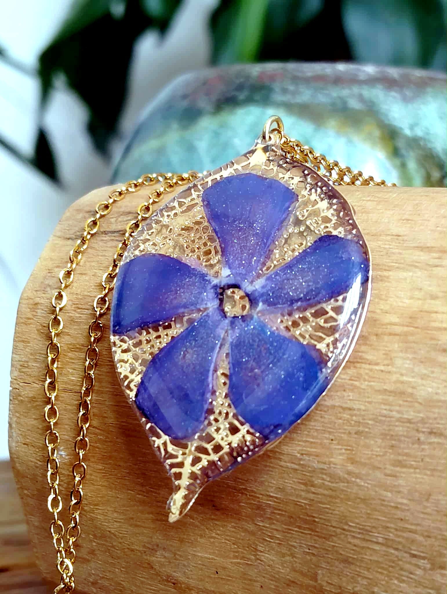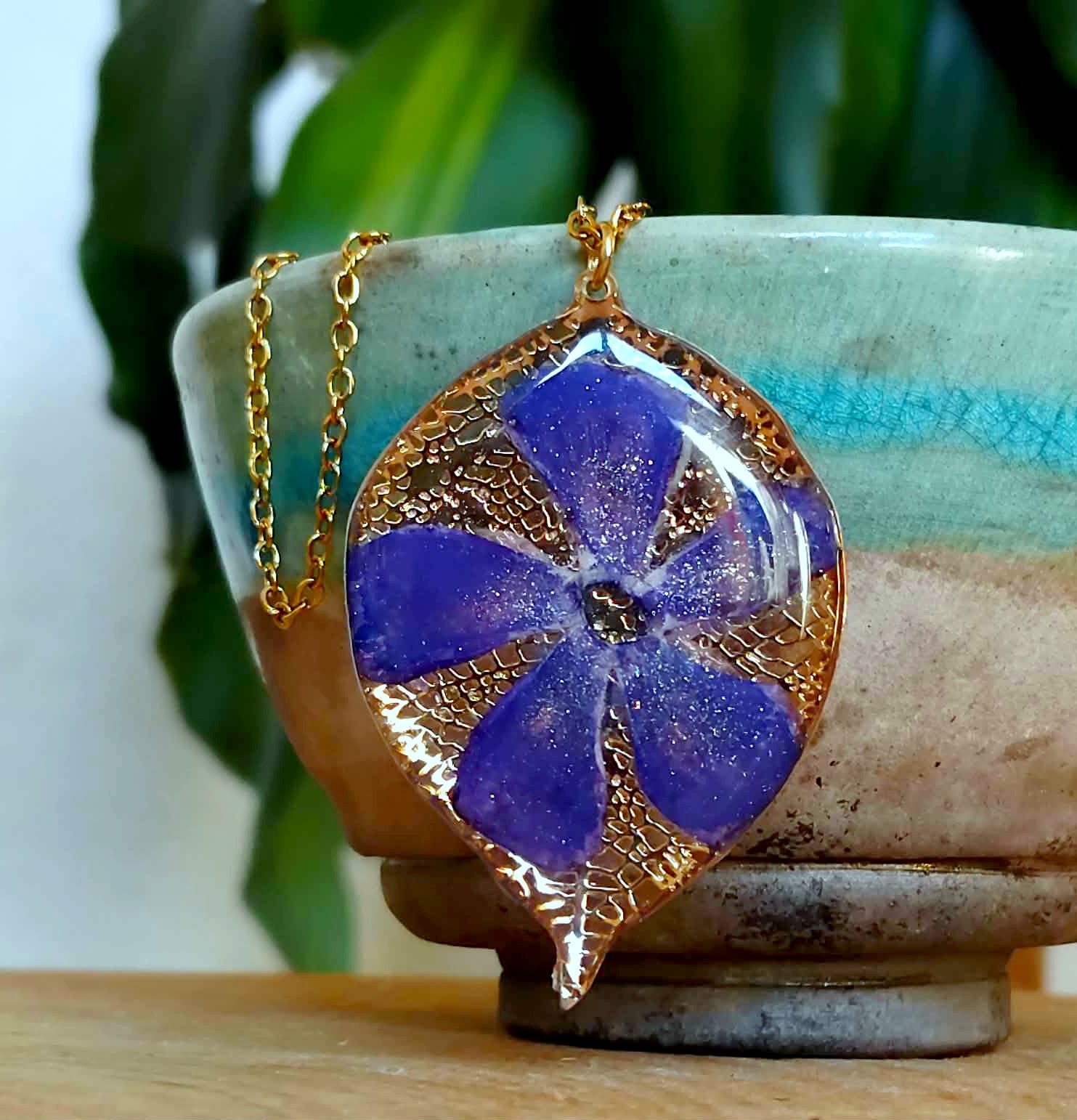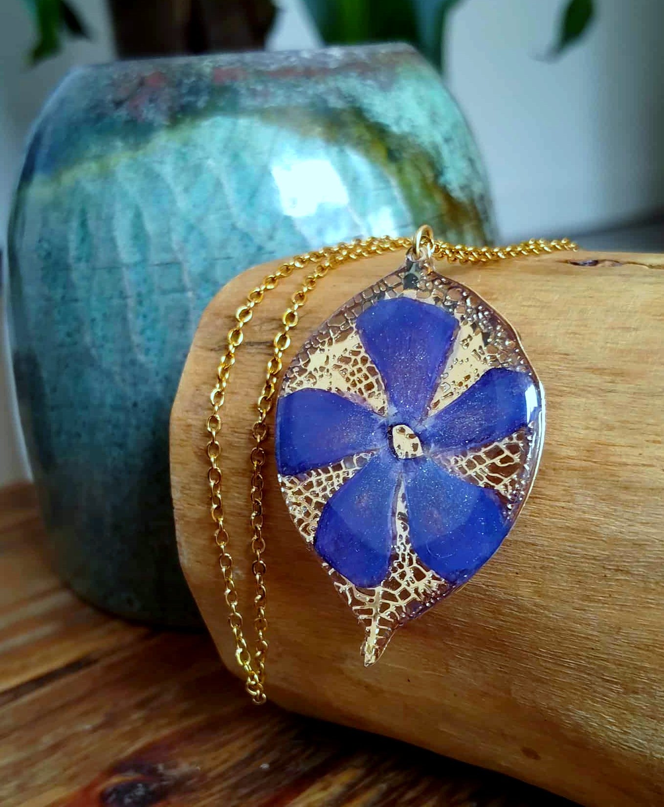 Pendentif Feuille de 4cm de long en acier inox recouvert de résine époxy de marque française et de haute qualité