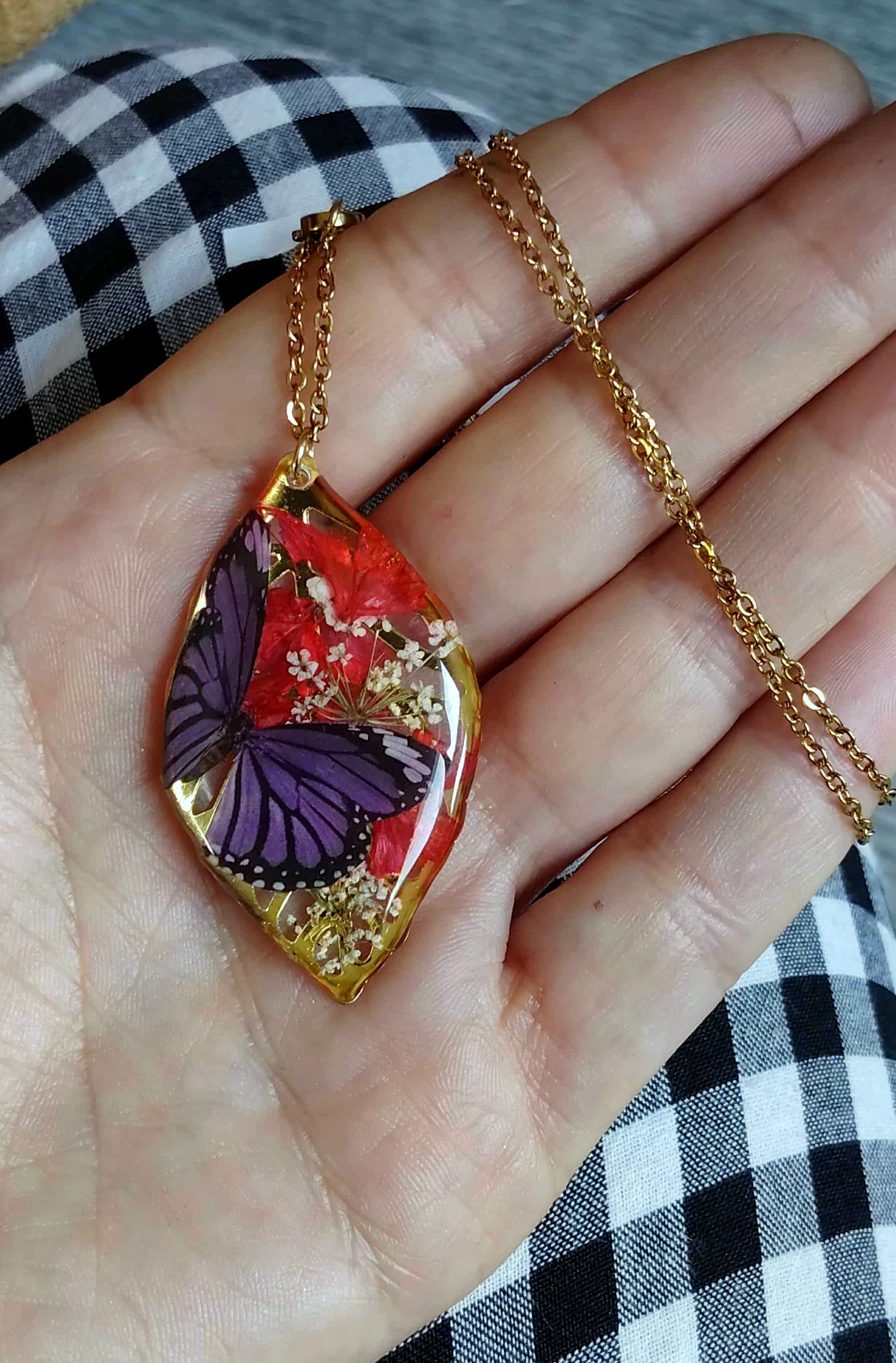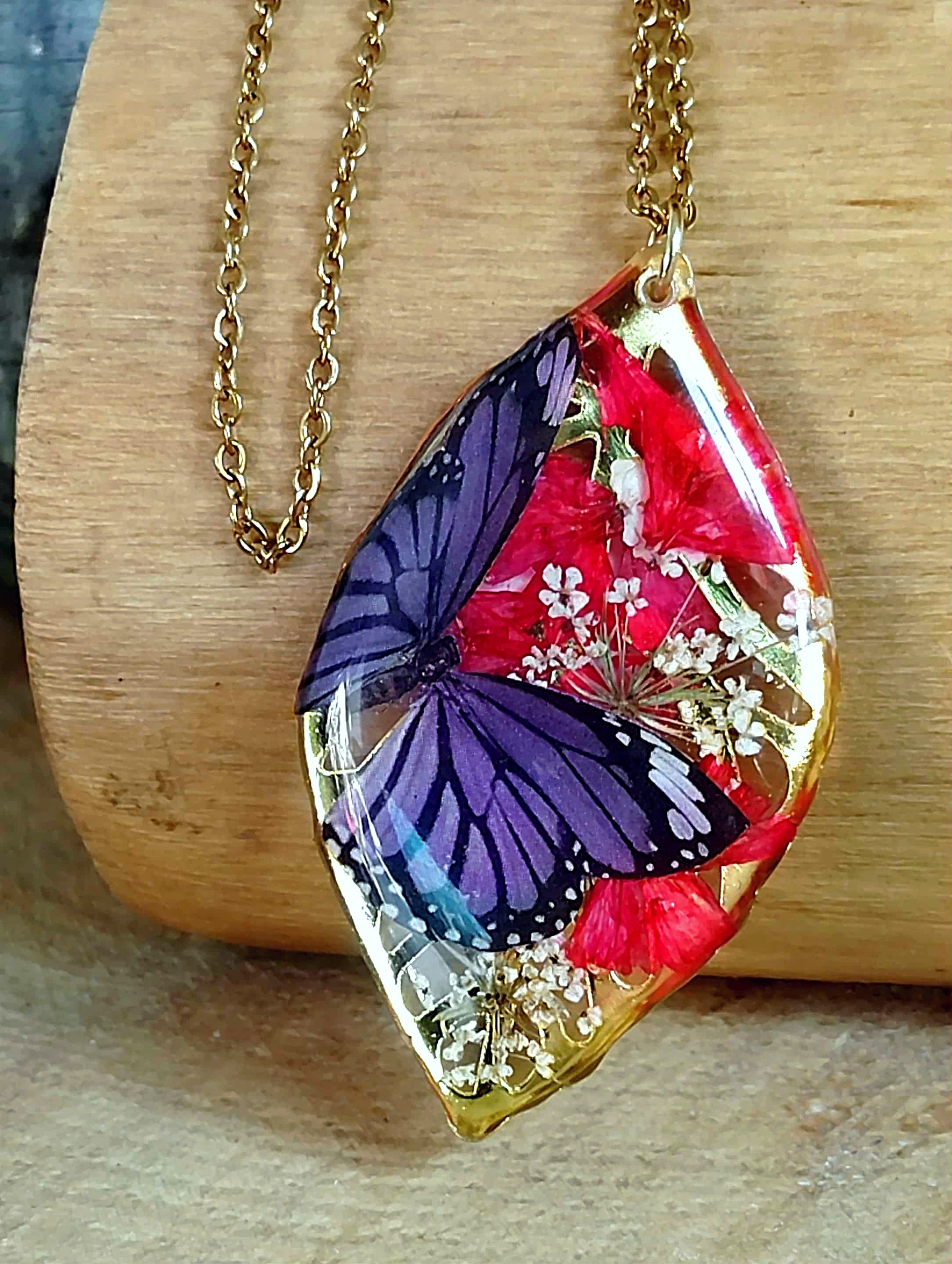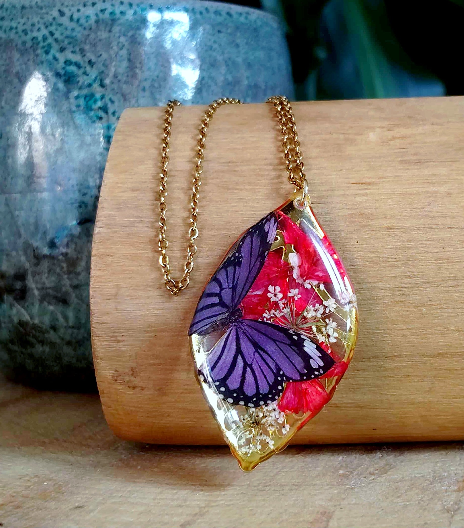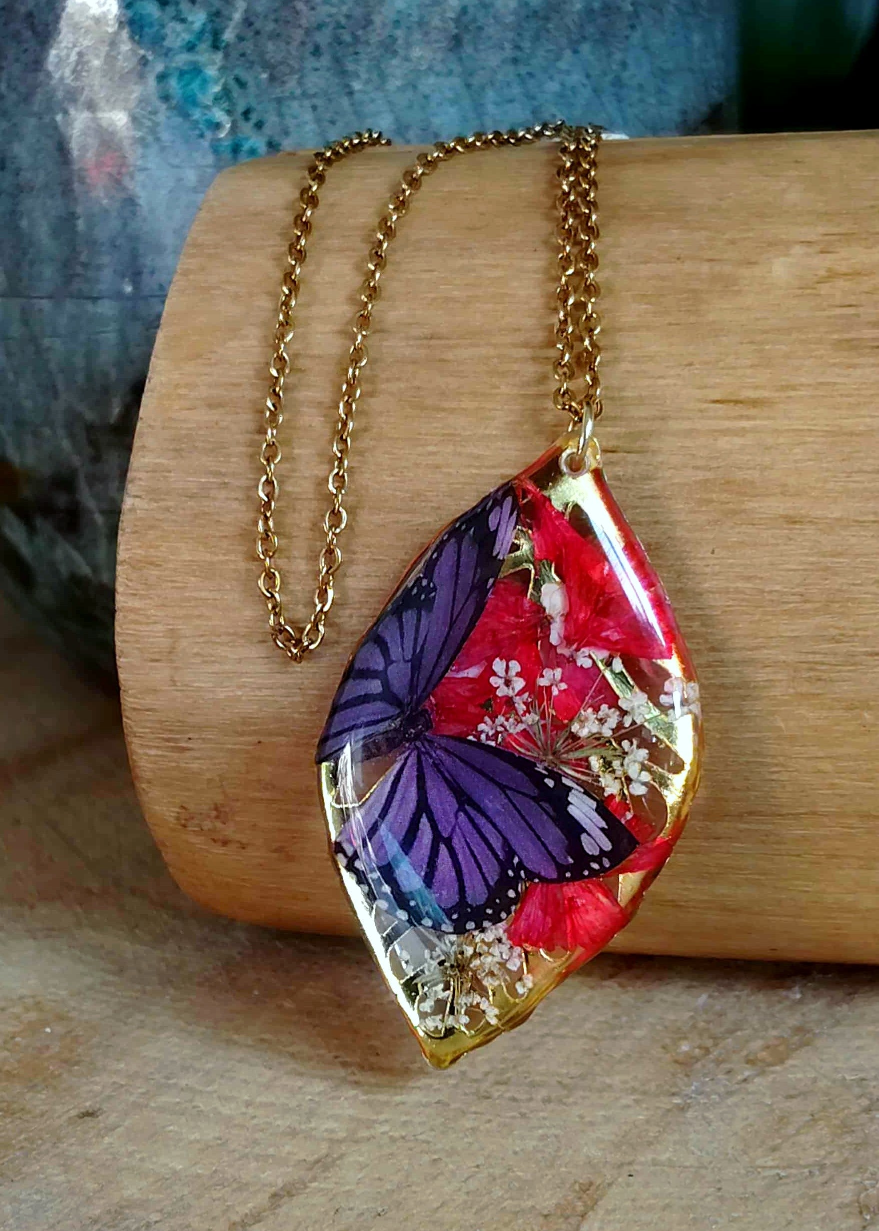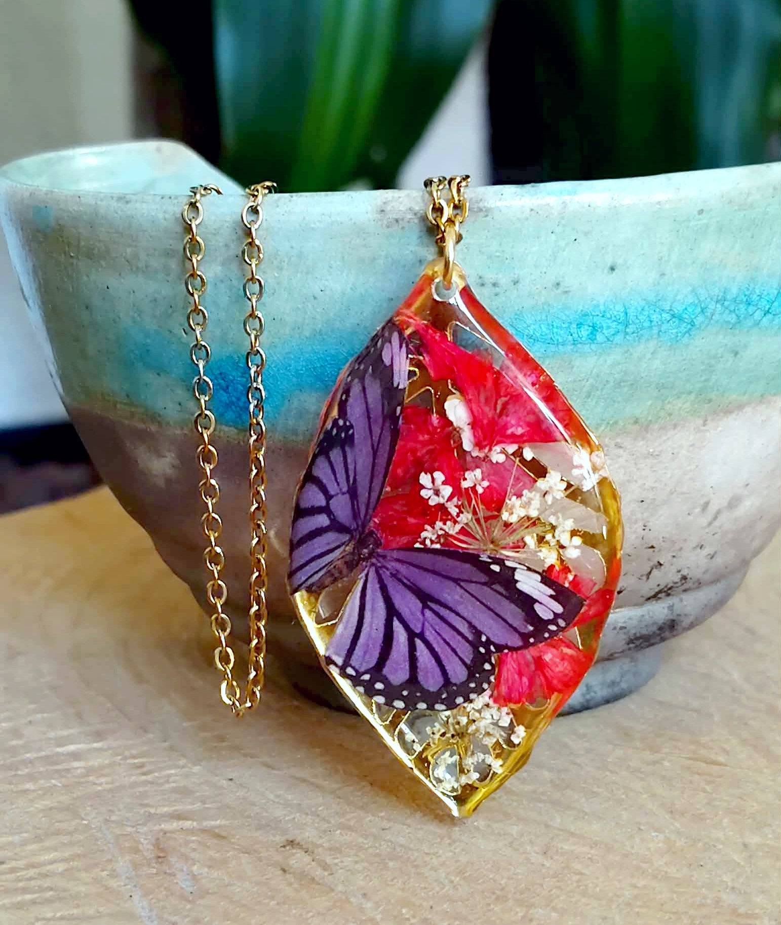 Pendentif feuille de 4cm de long en acier inox recouvert de résine époxy de marque française et de haute qualité