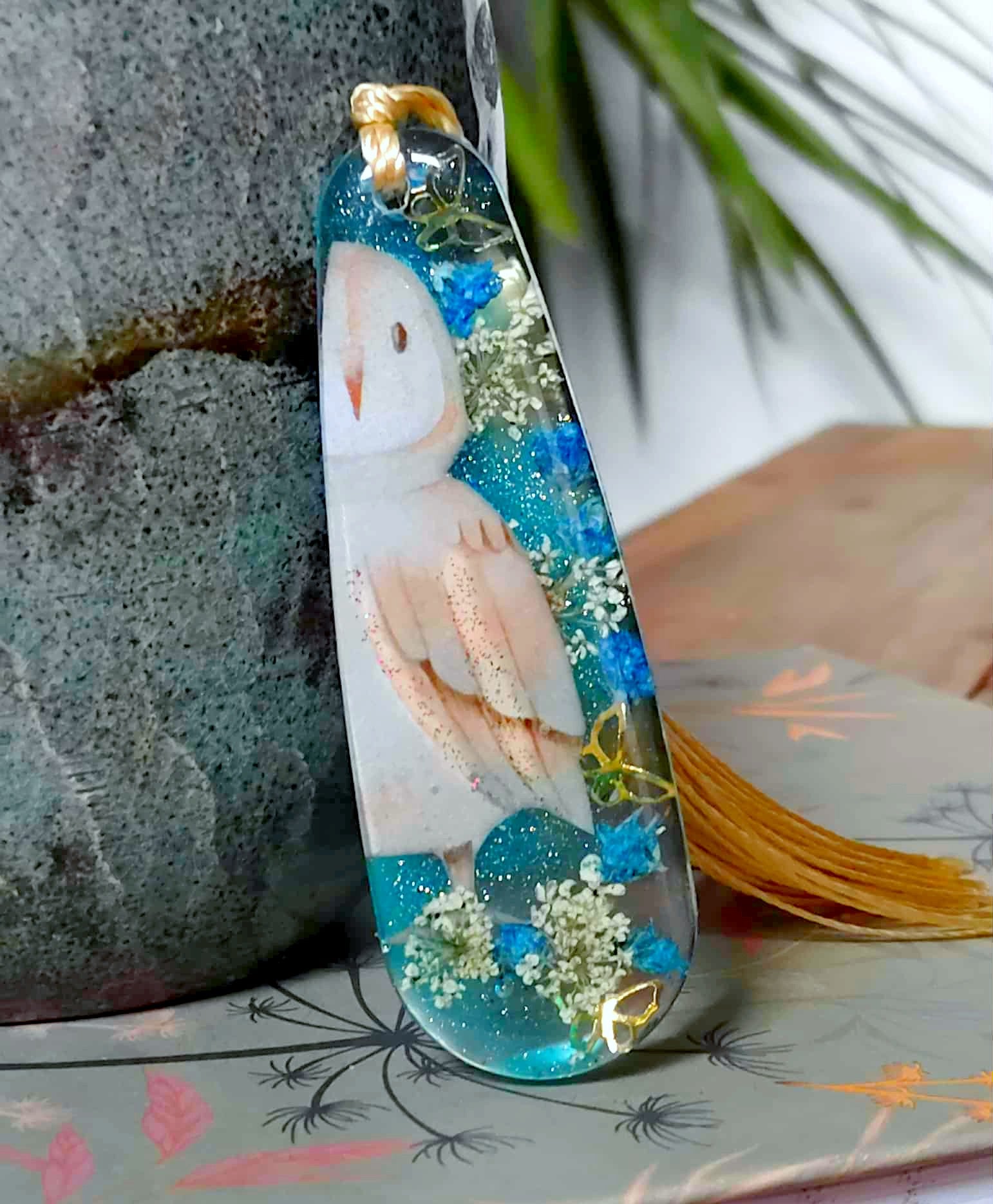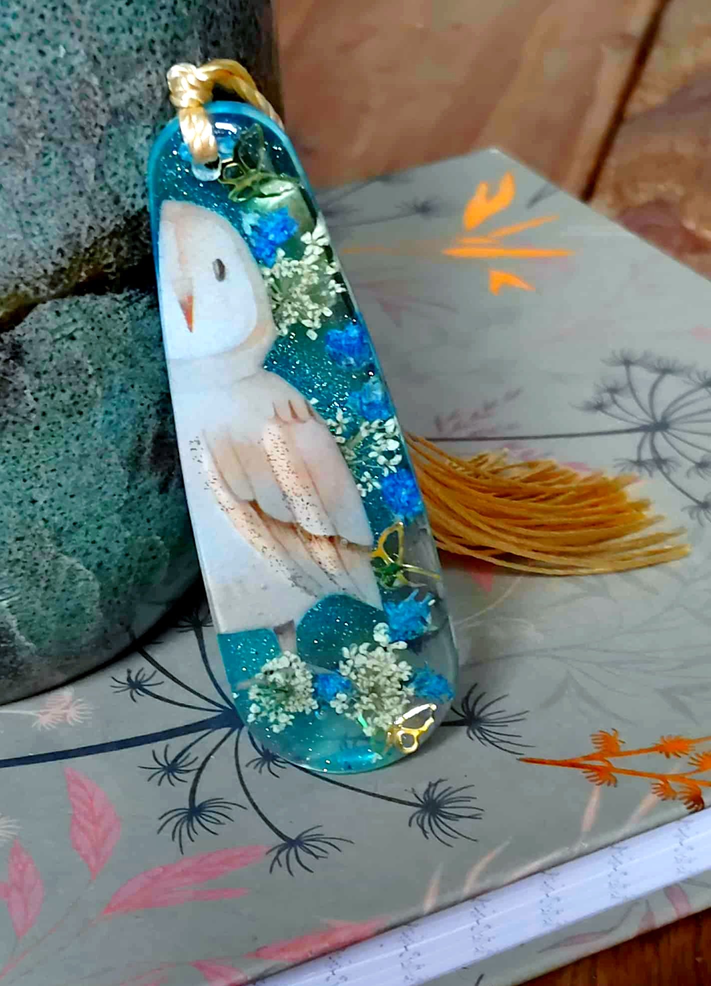 Le marque page est un rectangle de 7cm de long et de 2,5 cm de large est en résine époxy de marque française et de haute qualité
