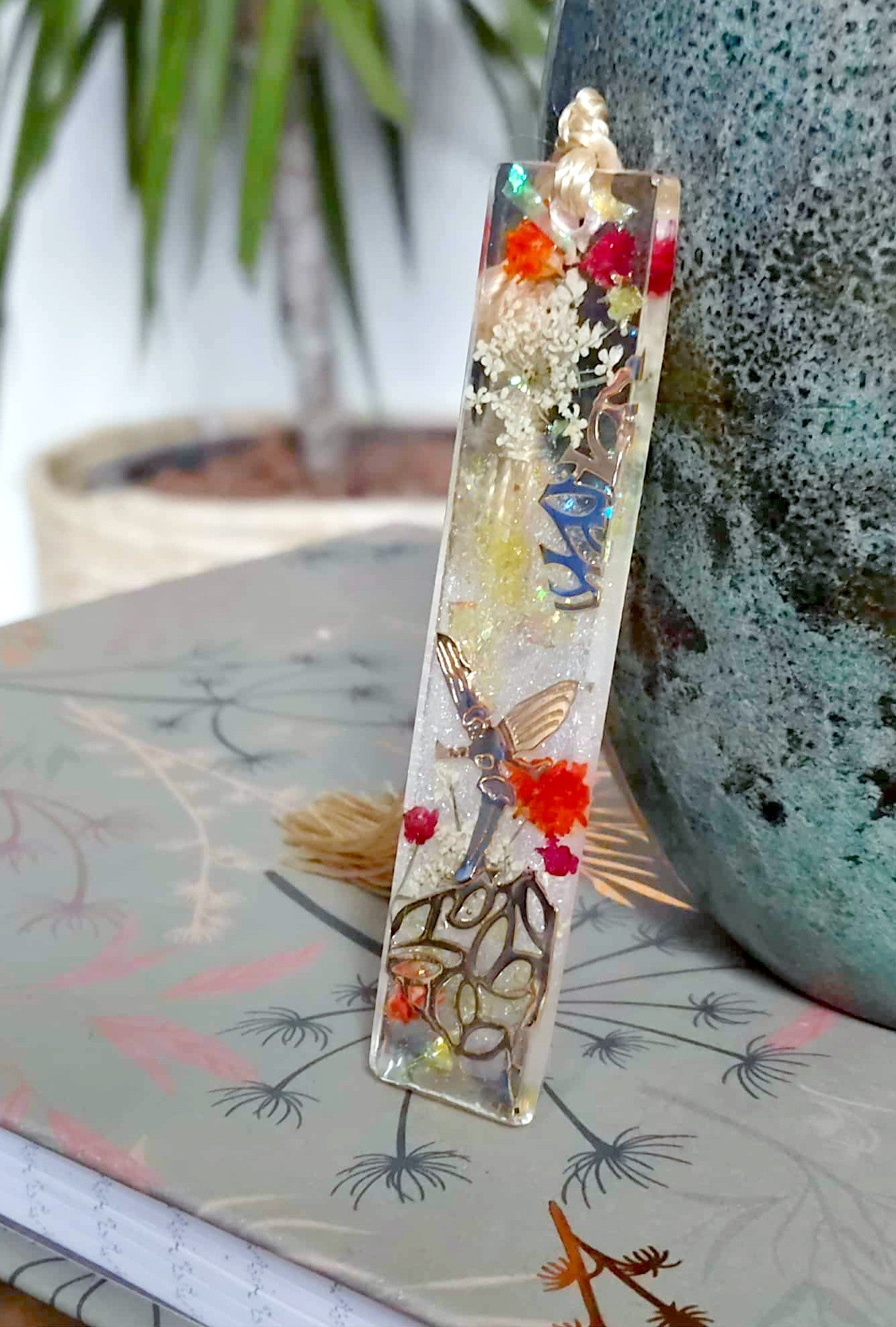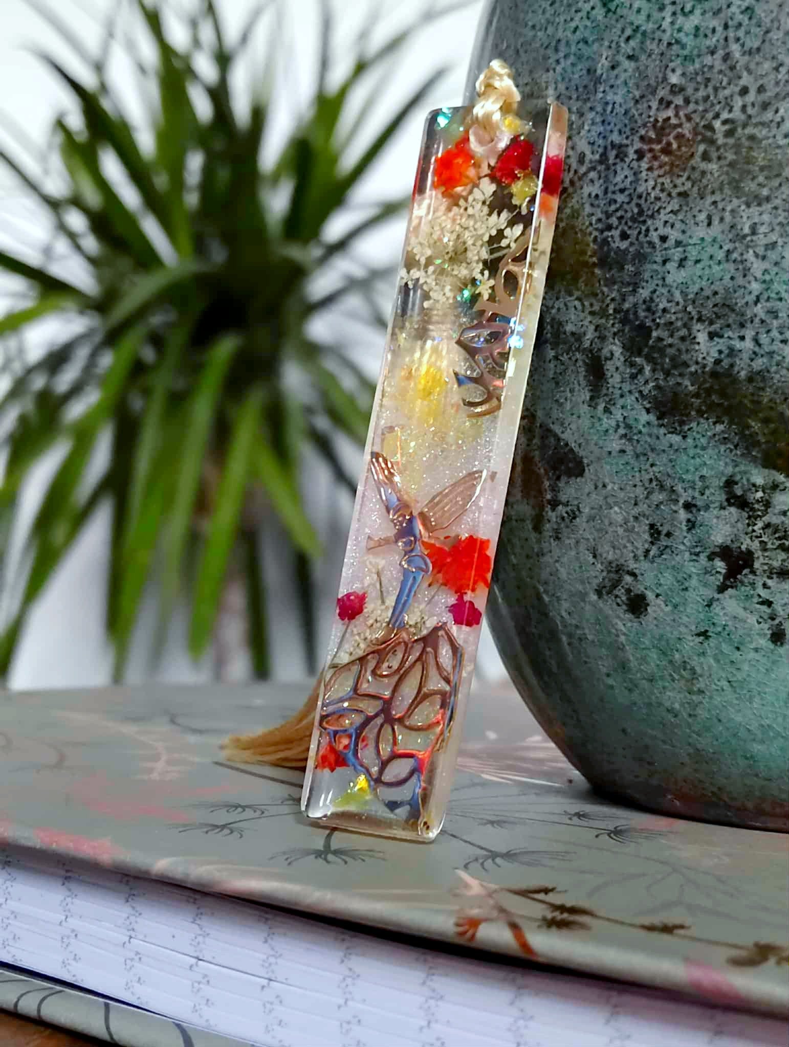 Le marque page est un rectangle de 7cm de long et d'1 cm de large est en résine époxy de marque française et de haute qualité