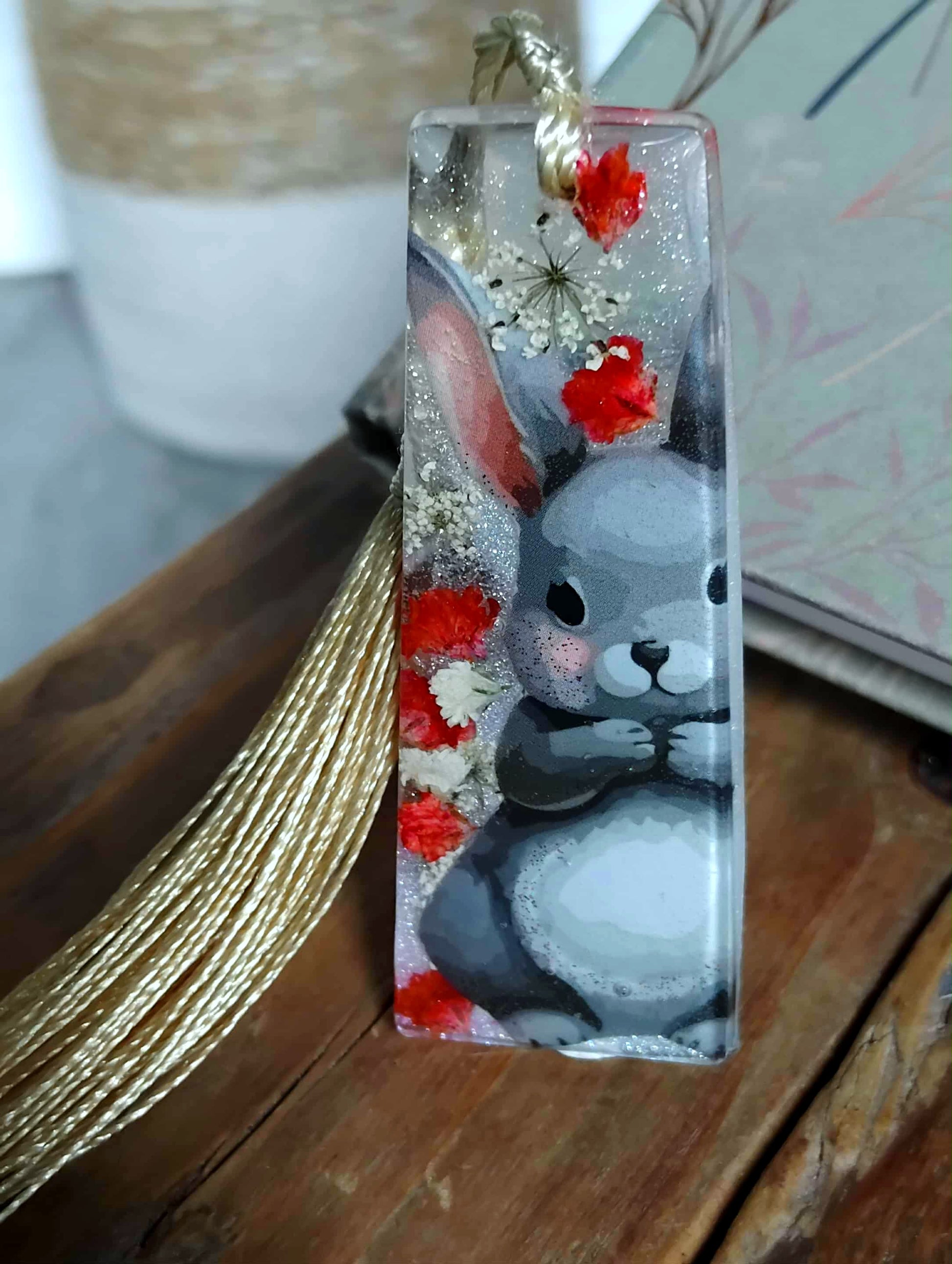 Le marque page est un rectangle de 7cm de long et de 2,5 cm de large est en résine époxy de marque française et de haute qualité