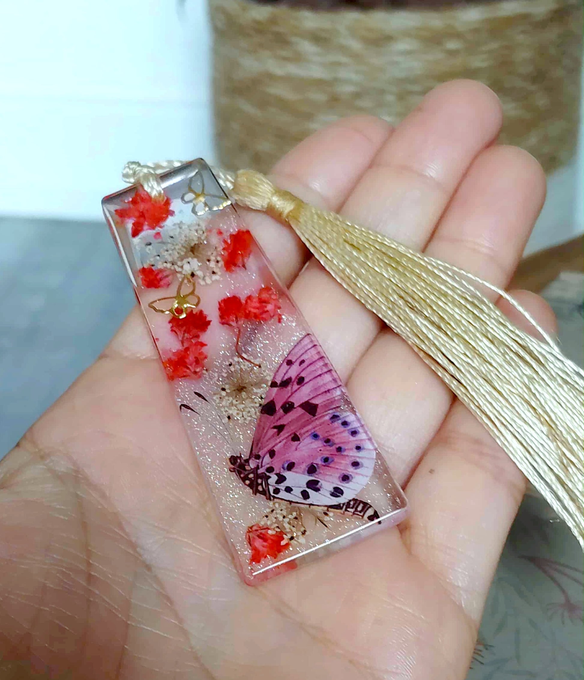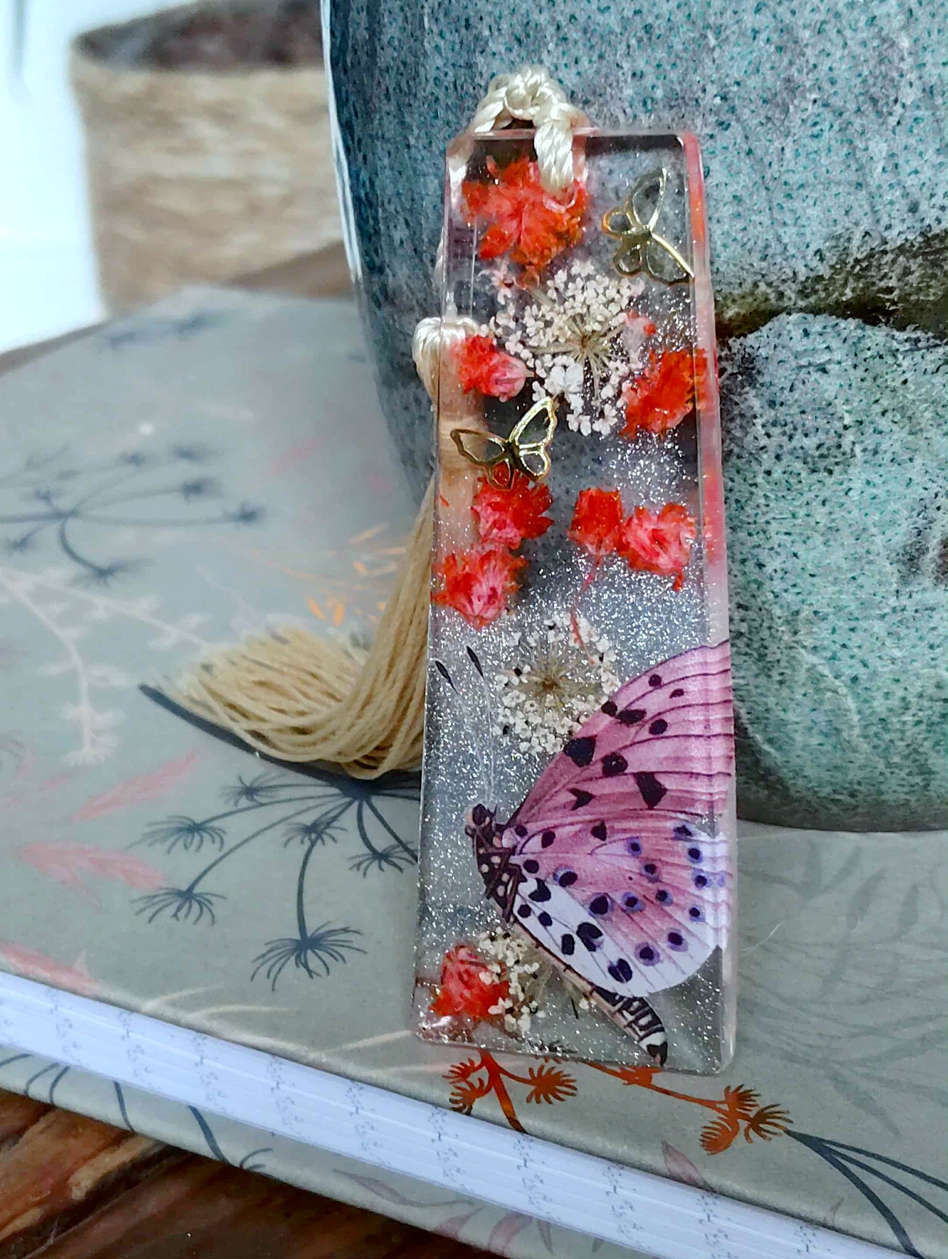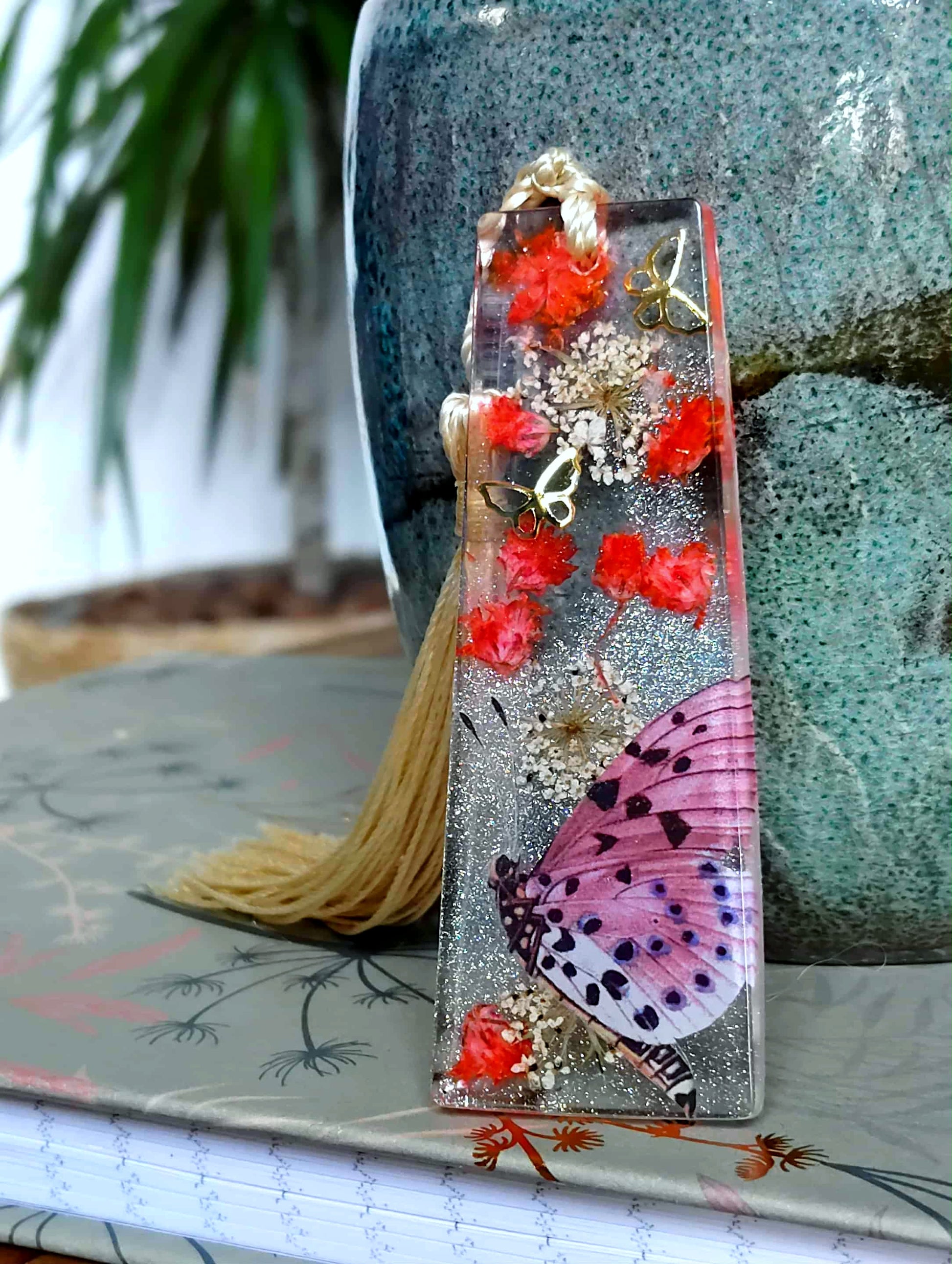 Le marque page est un rectangle de 7cm de long et de 2,5 cm de large est en résine époxy de marque française et de haute qualité