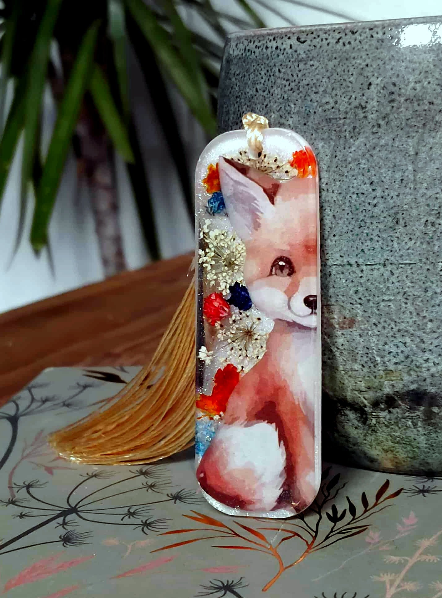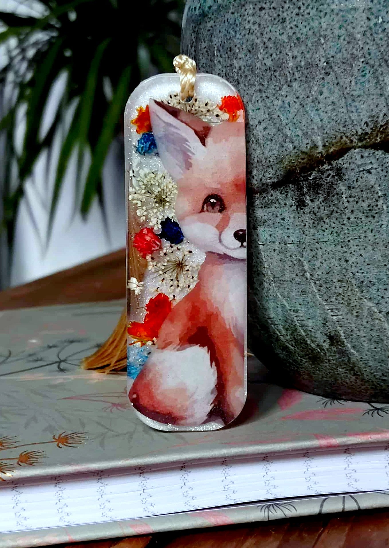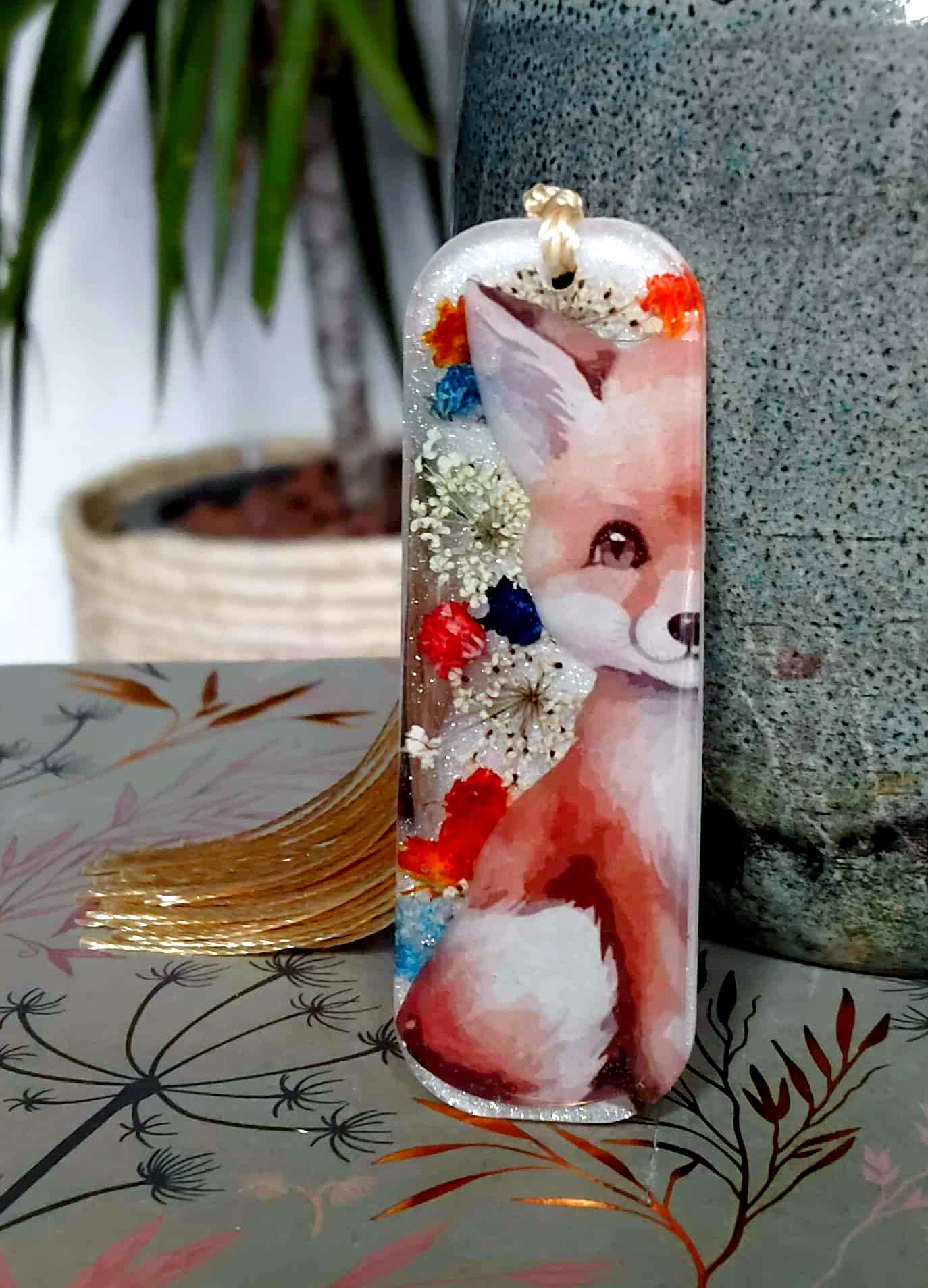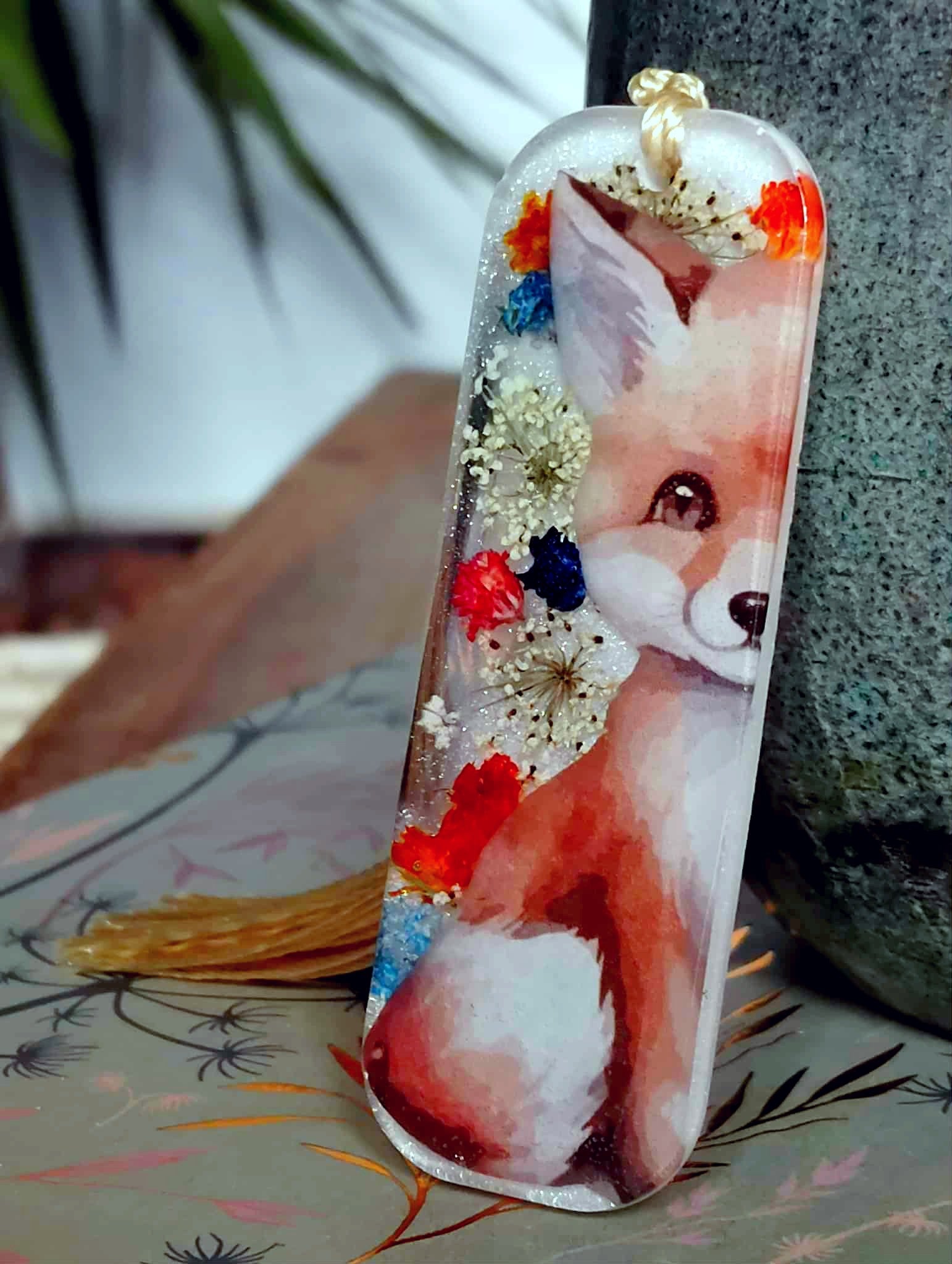 Le marque page est un rectangle de 7cm de long et de 2,5 cm de large est en résine époxy de marque française et de haute qualité