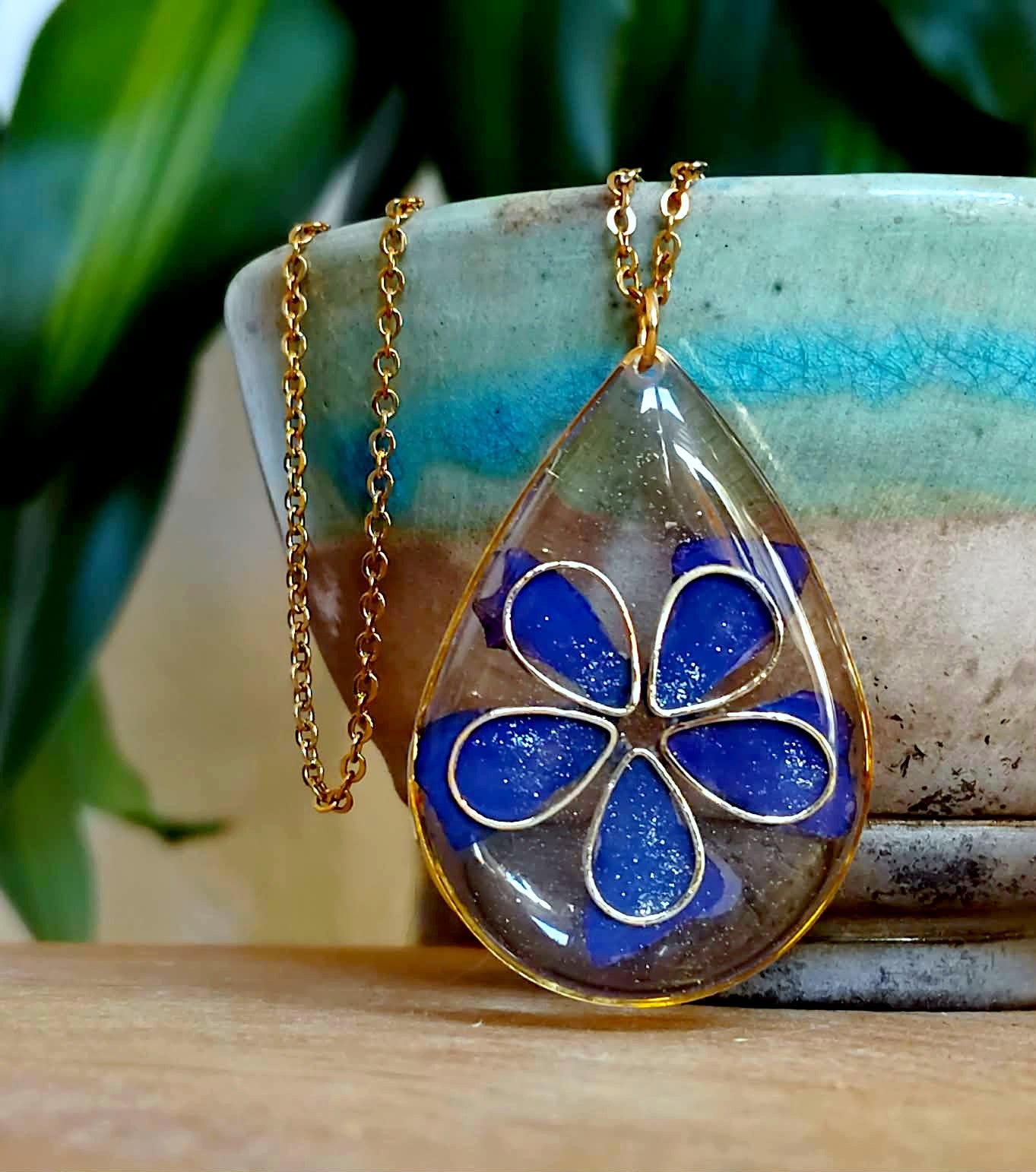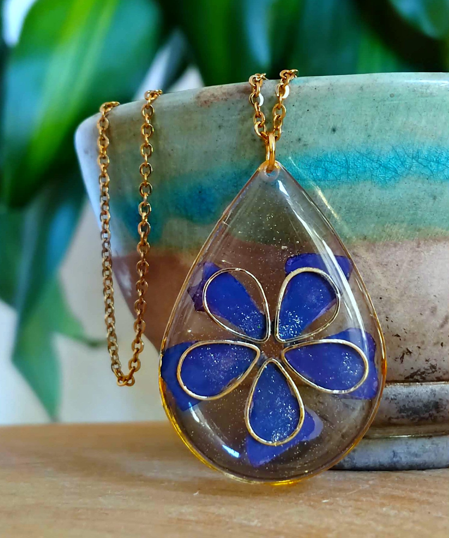 Pendentif Goutte de 4cm de long en acier inox recouvert de résine époxy de marque française et de haute qualité